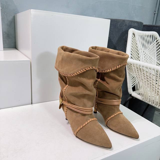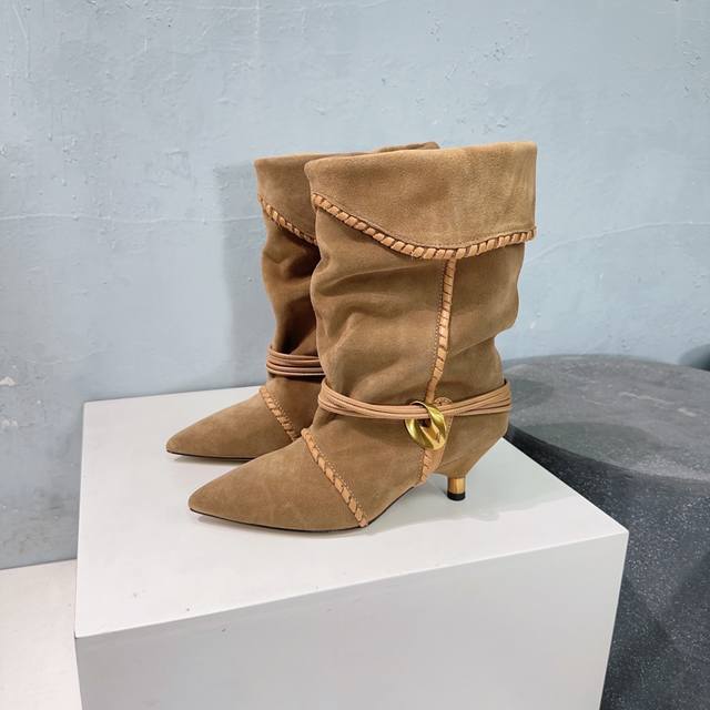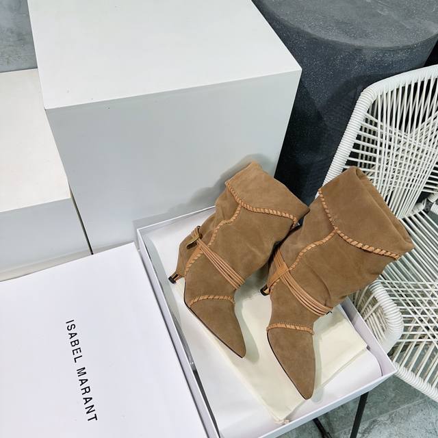 高品质出厂 !顶级品质isabel Marant 伊莎贝尔24Ss秋冬新款松垮皱面矮跟尖头牛反绒短靴!欧美西部牛仔复古风!