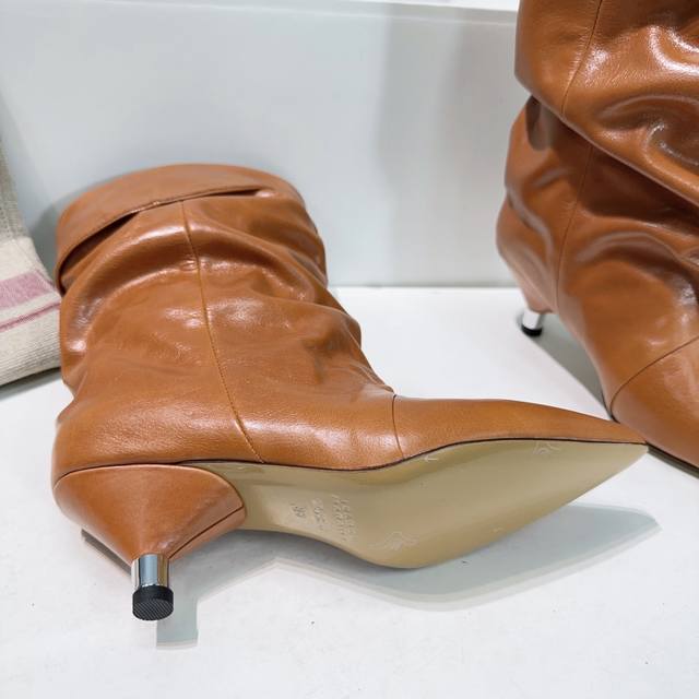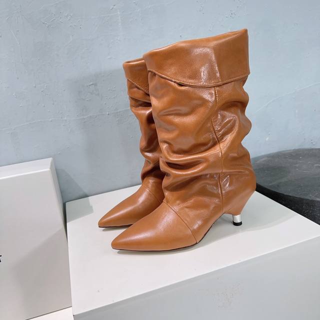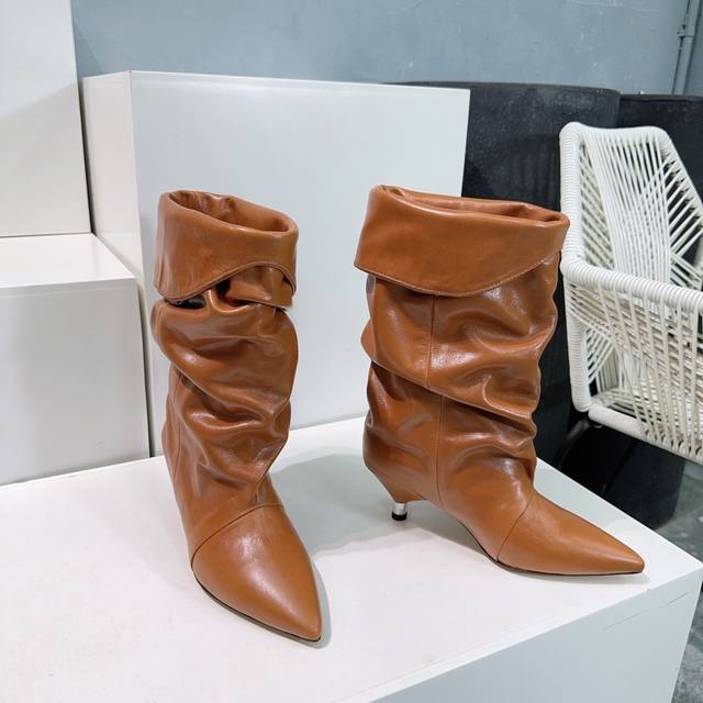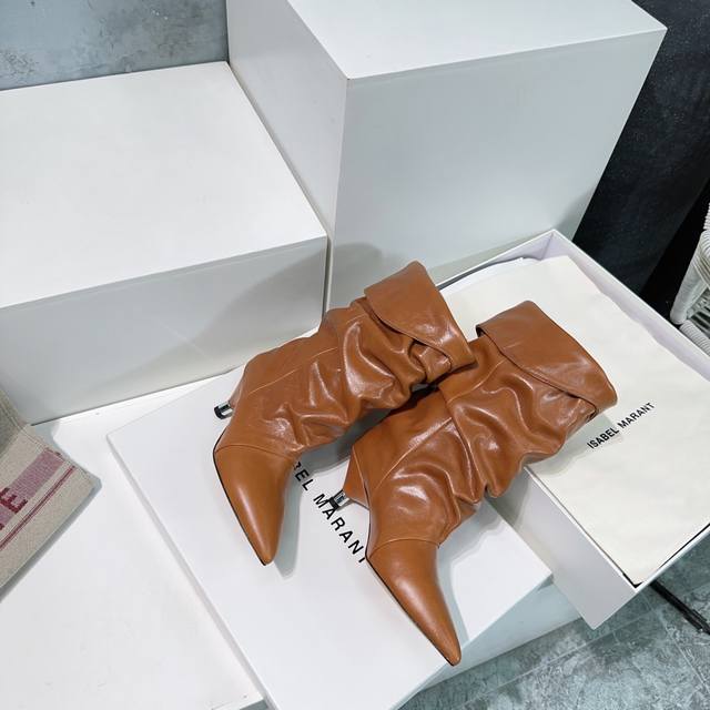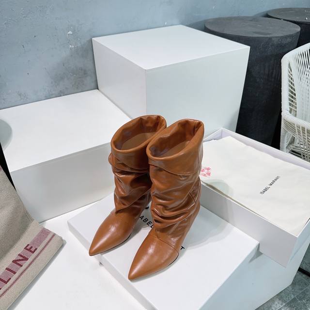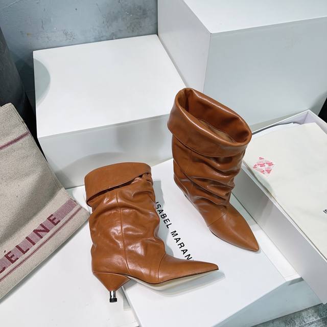 高品质出厂 !顶级品质isabel Marant 伊莎贝尔24Ss秋冬新款松垮皱面矮跟尖头牛反绒短靴!