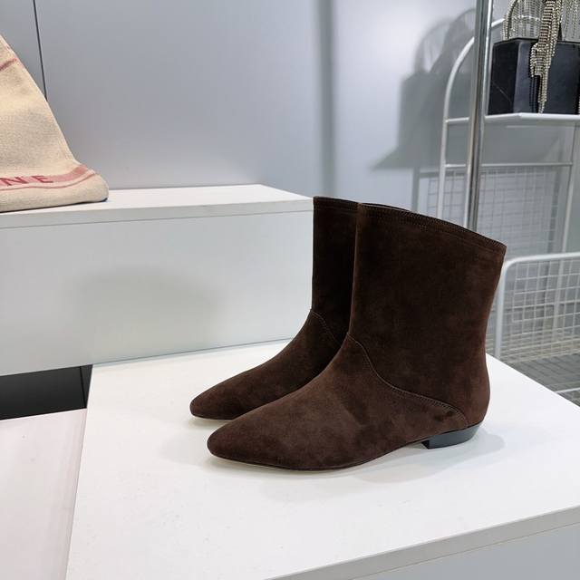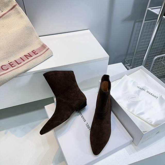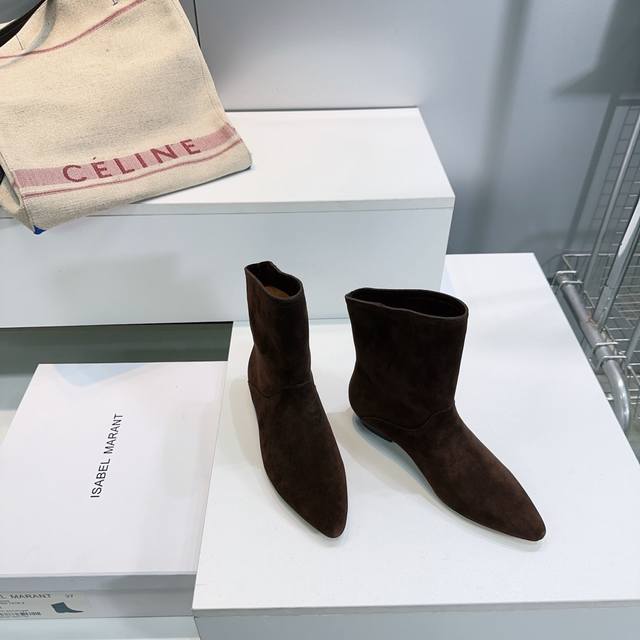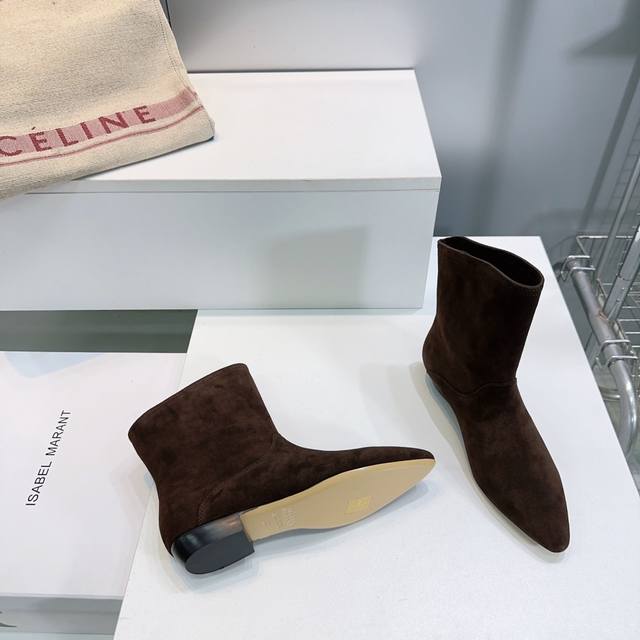 高品质出厂 !顶级品质Isabel Marant 伊莎贝25Ss秋冬简易尖头一脚蹬短靴!满满家族风格的一款经典女款拼接中短靴标准的欧美风格代表一个用极简风格来陈述一对靴子的牌子必不可少的一款简单靴~诠释百搭的味道!灰军绿非常高级的颜色,鞋面高丝光牛反绒,靴身超级柔软舒适,及踝的高度刚刚好,四季可搭,上脚帅气利落,慵懒风玩到了极致,酷酷女孩的时尚单品。