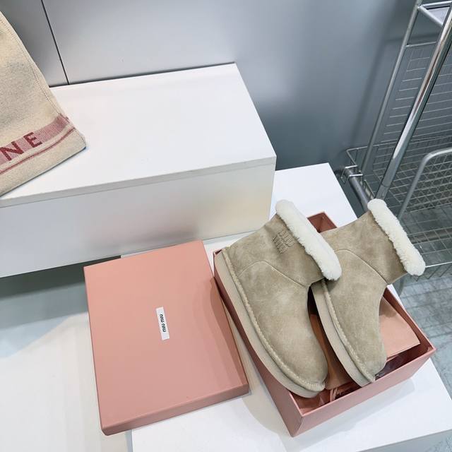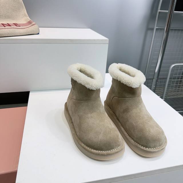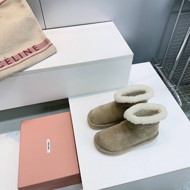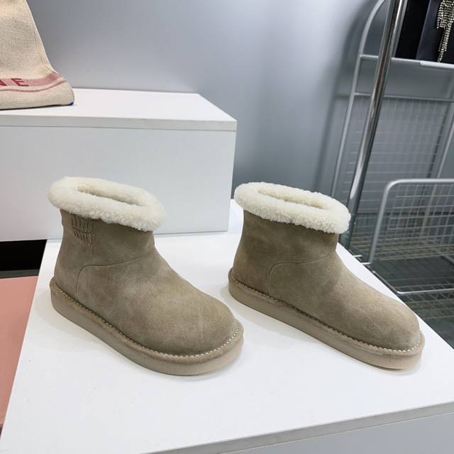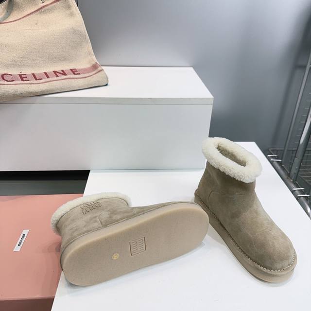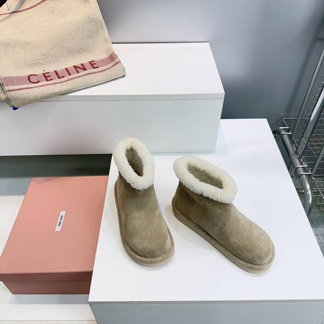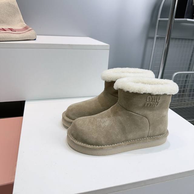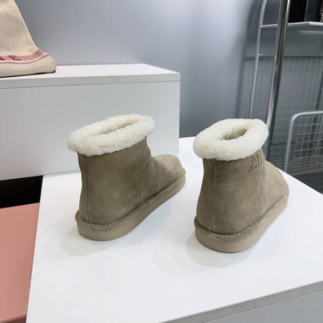 高品质出厂 !顶级品质Miu Miu缪缪2025冬季新款简易圆头羊羔毛雪地靴!