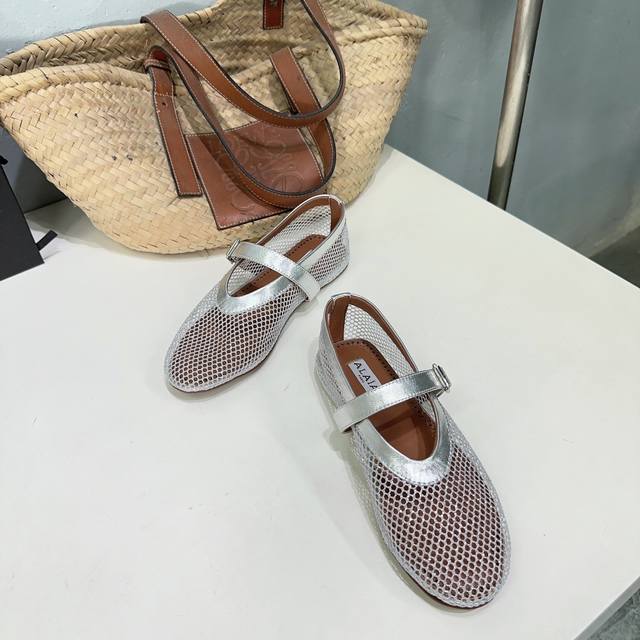 高品质出厂 !Alaia 24春夏网面平底单鞋!最新春夏时装秀新款系列平底芭蕾舞鞋!法国高端一线高定品牌!时尚界最后的手艺人