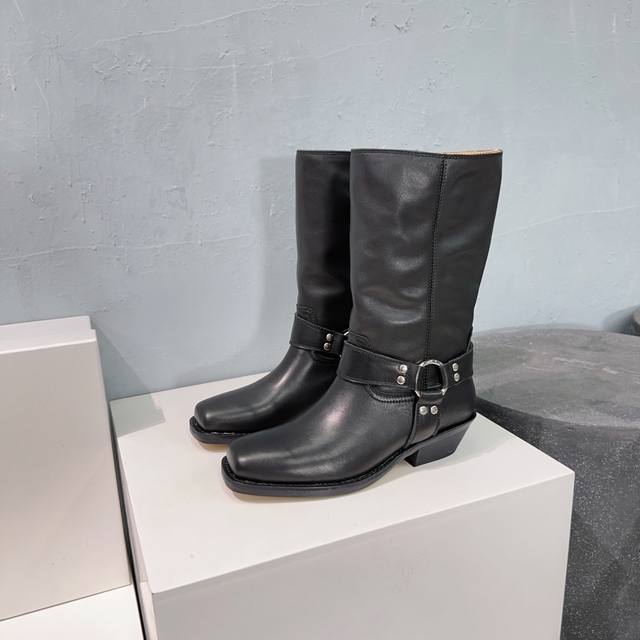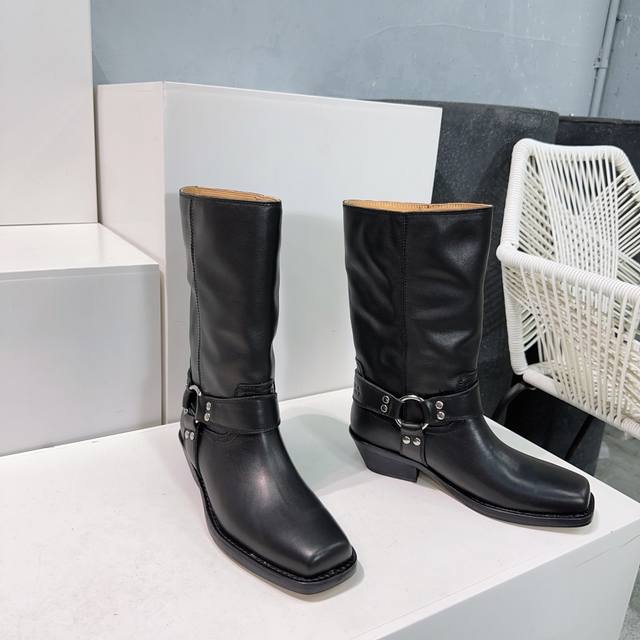 高品质出厂 !Isabel Marannt伊莎贝尔2025Ss秋冬复古五金圆扣带粗跟方头一脚蹬筒靴中靴! 西部风裸靴主宰 24Ss秀场,牛仔靴无疑是历久弥新的其