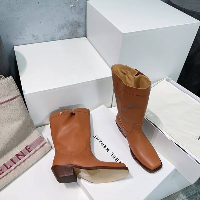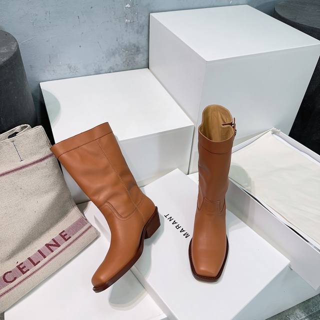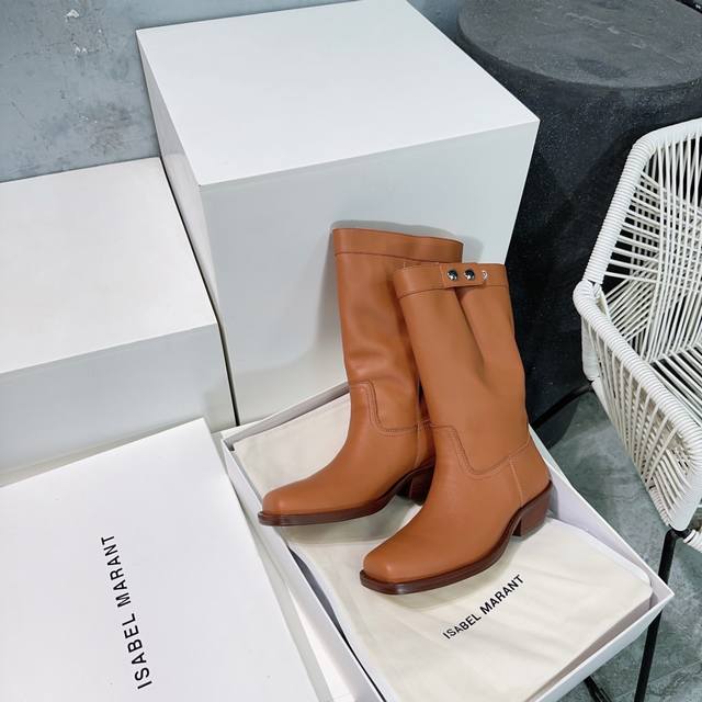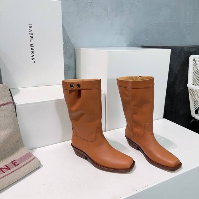 高品质出厂 !Isabel Marant 伊莎贝尔 Ss秋冬复古粗跟方头一脚蹬筒靴短靴