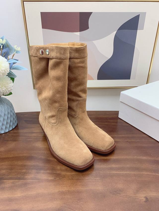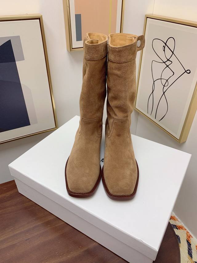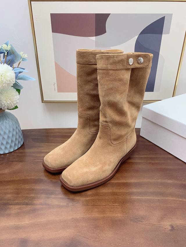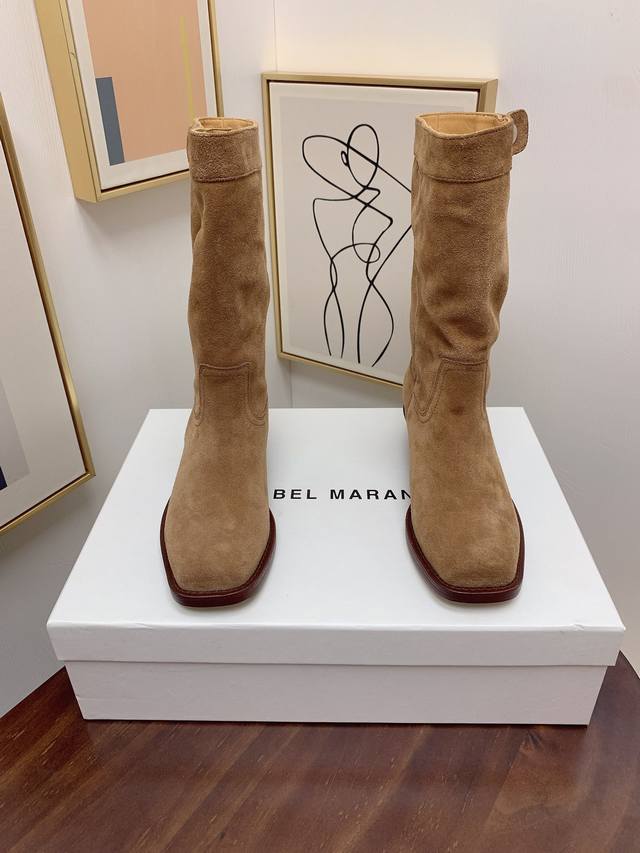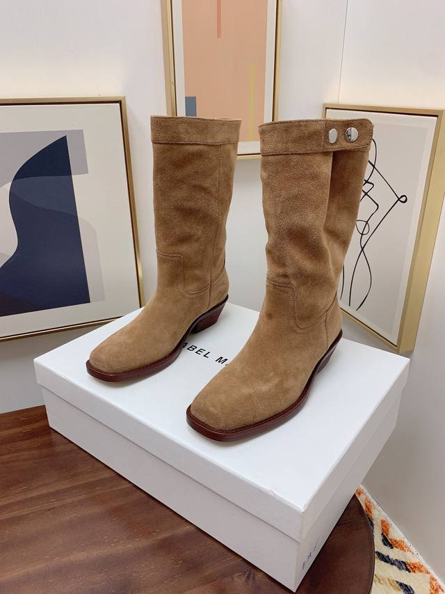 高品质出厂 !Isabel Marant 伊莎贝尔2024 Ss秋冬复古粗跟方头一脚蹬筒靴短靴
