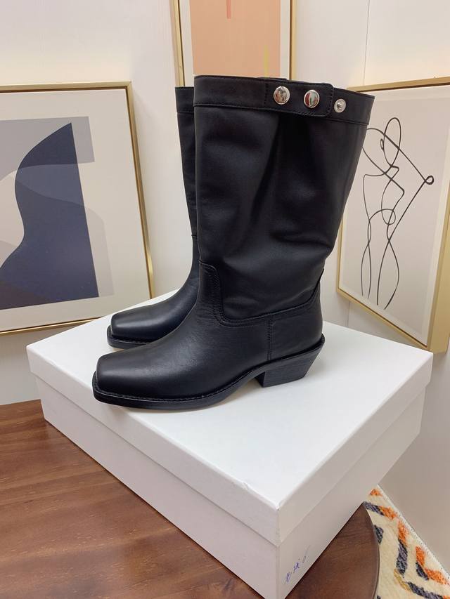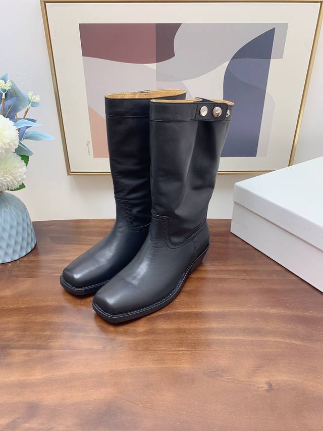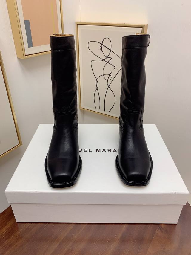 高品质出厂 !Isabel Marant 伊莎贝尔2024 Ss秋冬复古粗跟方头一脚蹬筒靴短靴