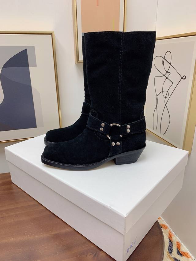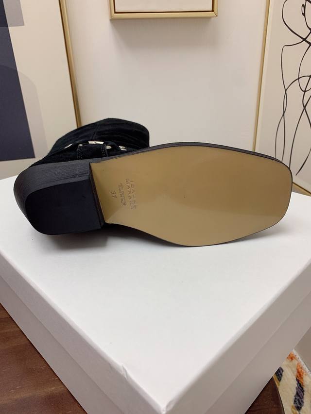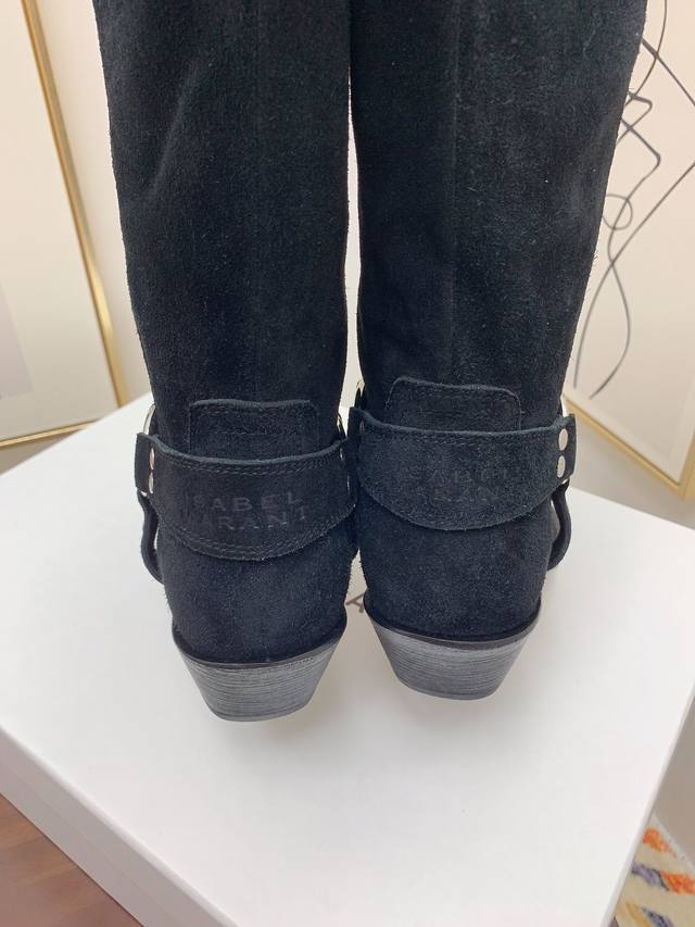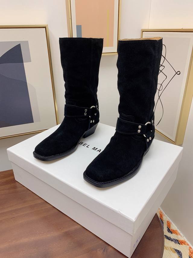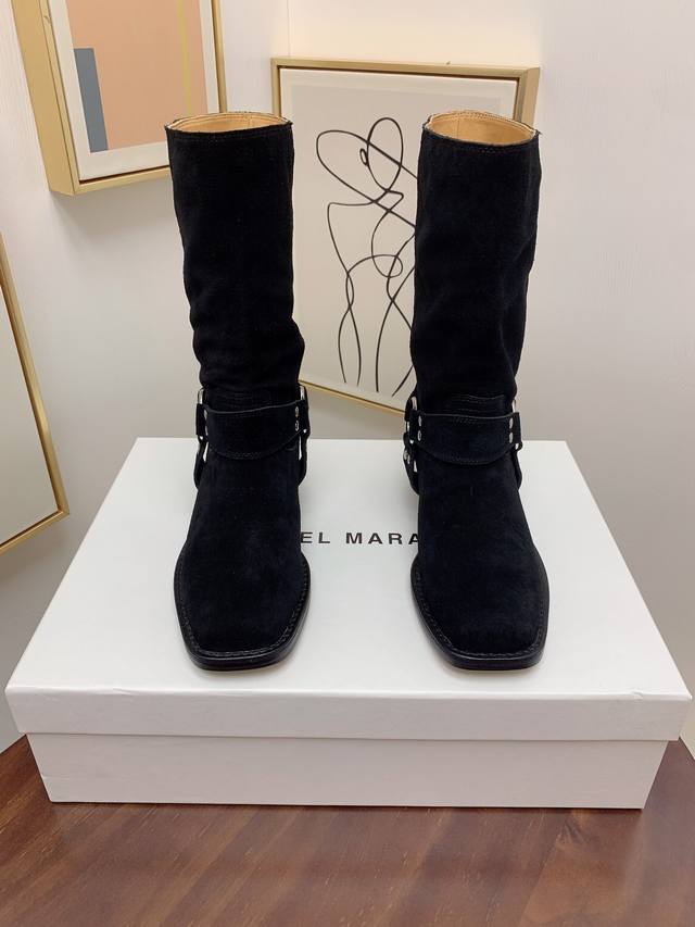高品质出厂 !Isabel Marant 伊莎贝尔2024 Ss秋冬复古粗跟方头一脚蹬筒靴短靴