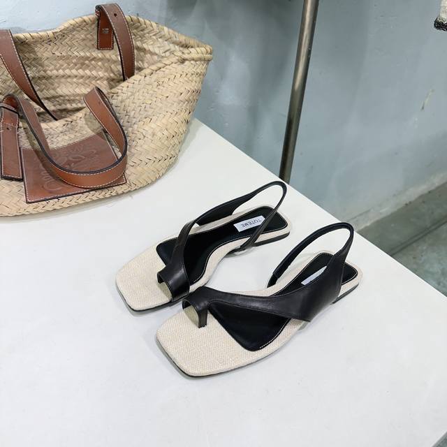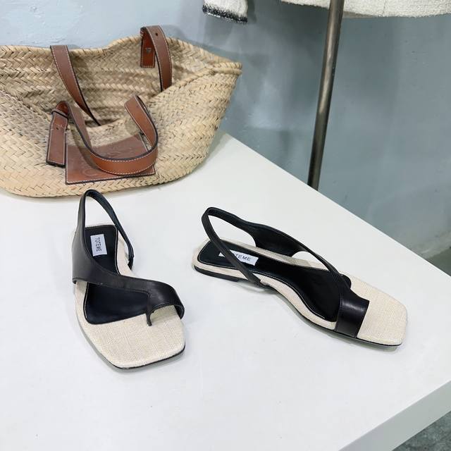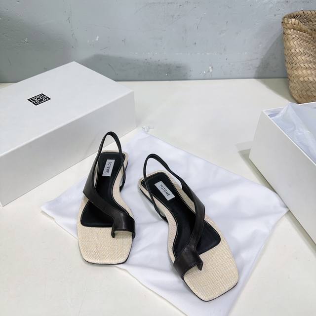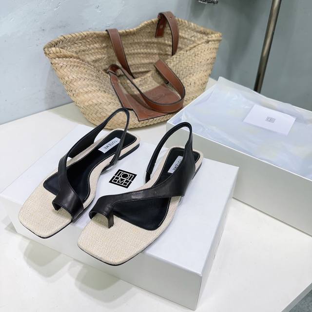 高品质出厂350!小众潮牌Toteme25春夏极简平底方头夹脚凉鞋!