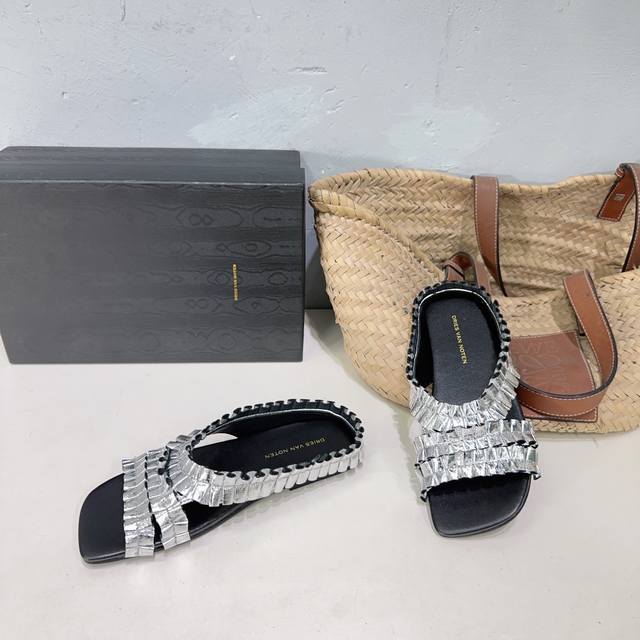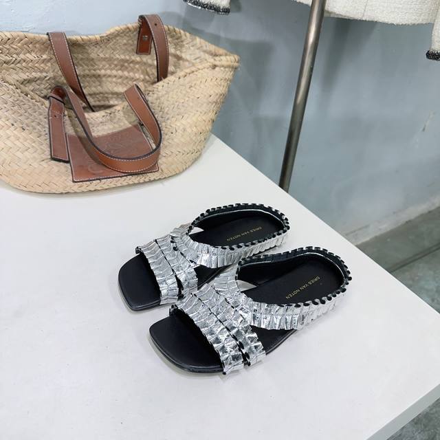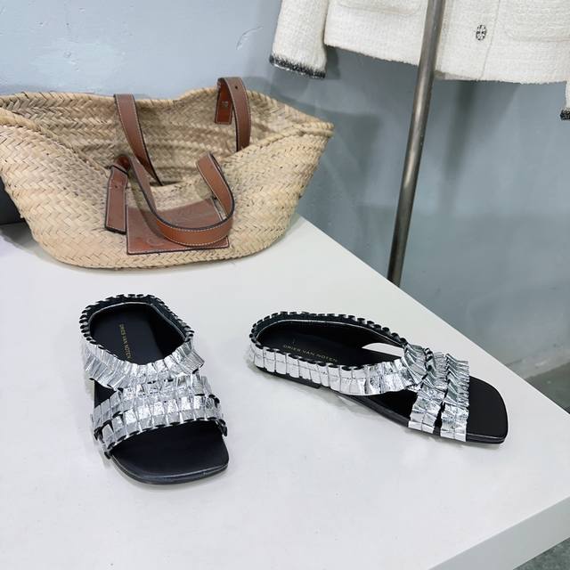 高品质出厂420!小众潮牌 Dries Van Noten 2025/Aw春夏新款时髦褶皱鞋面平底拖鞋!