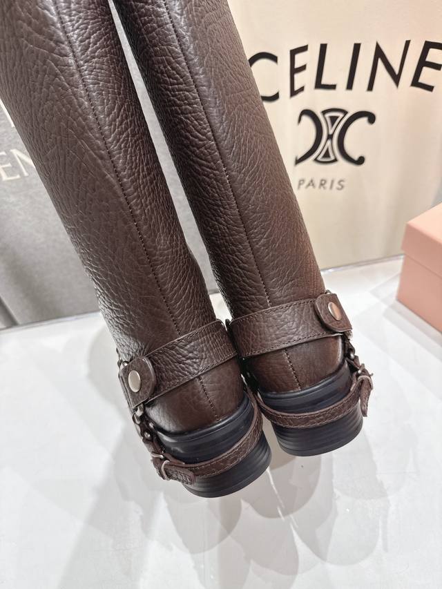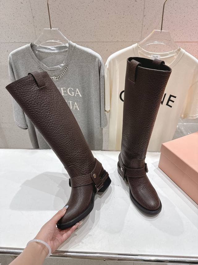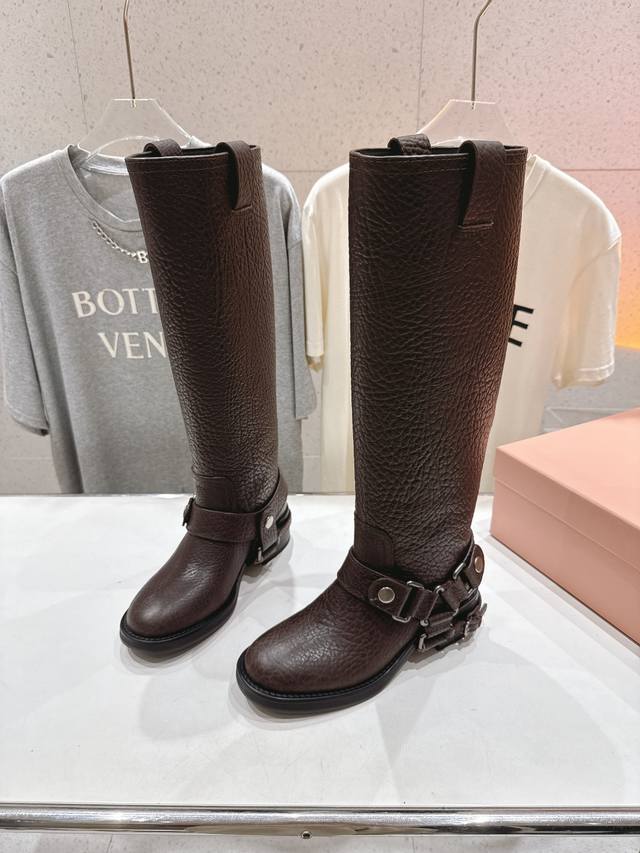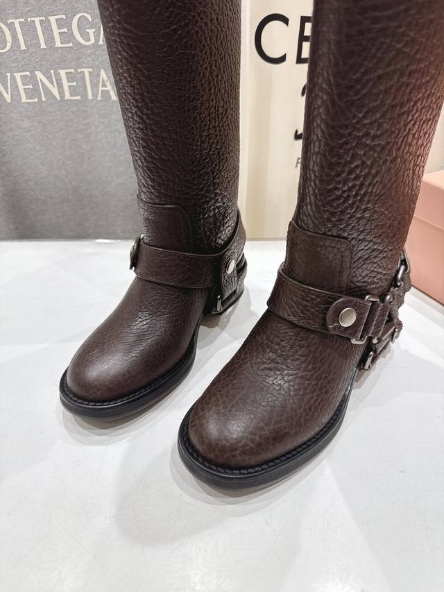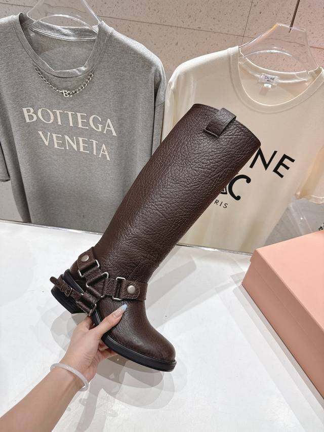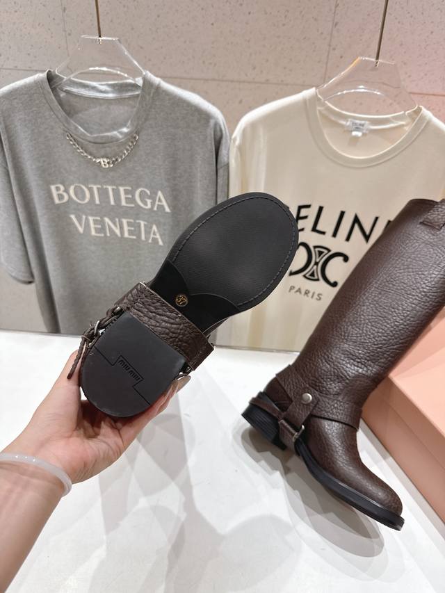 Miumiu 缪缪F022 2025Ss秋冬新款厚底直筒搭扣长靴骑士靴