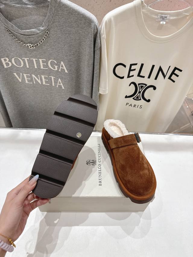Brunello Cucinelli 新款Bc秋冬半包毛毛拖鞋,市场高版本