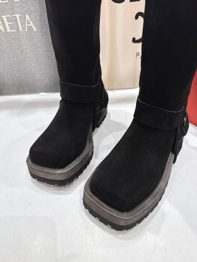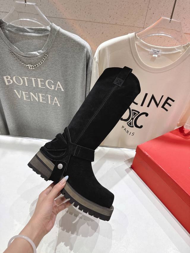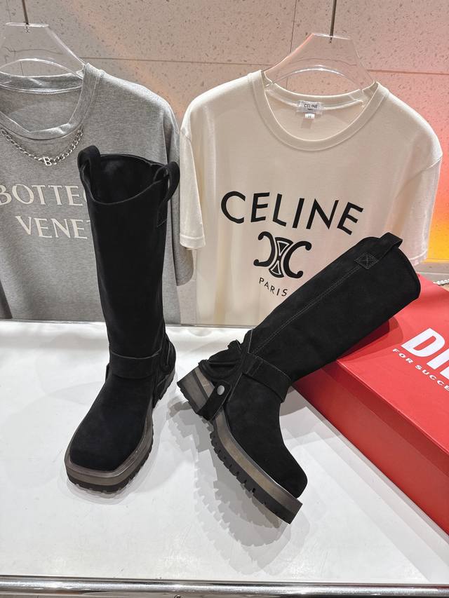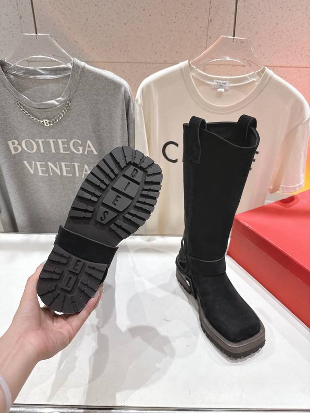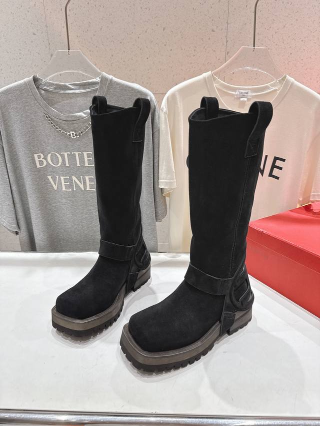 Diesei25Ss F046秋冬新款绑带厚底复古风方头长靴骑士靴马丁靴