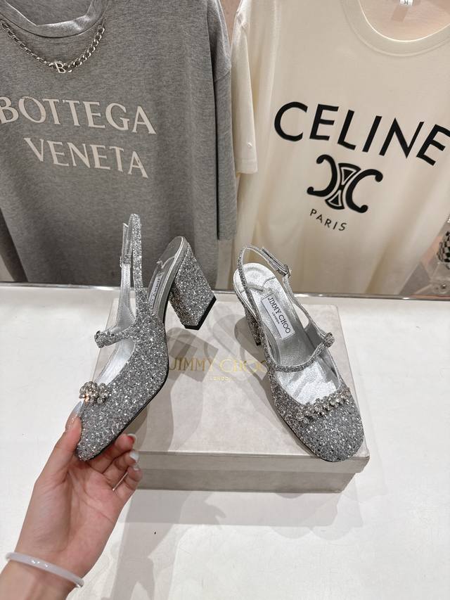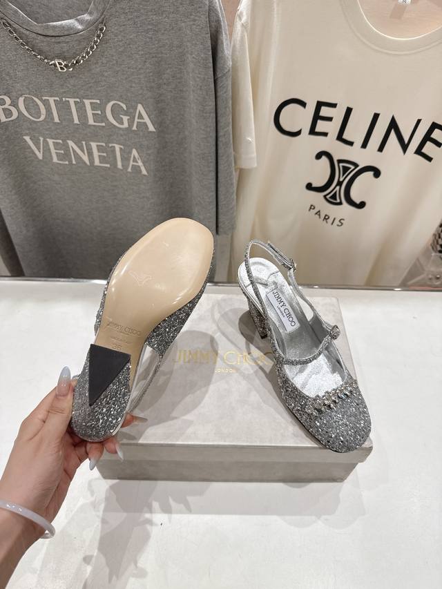 Jimmy Choo*|Jc 吉米周2025Ss新款简约水钻链条高跟鞋凉鞋