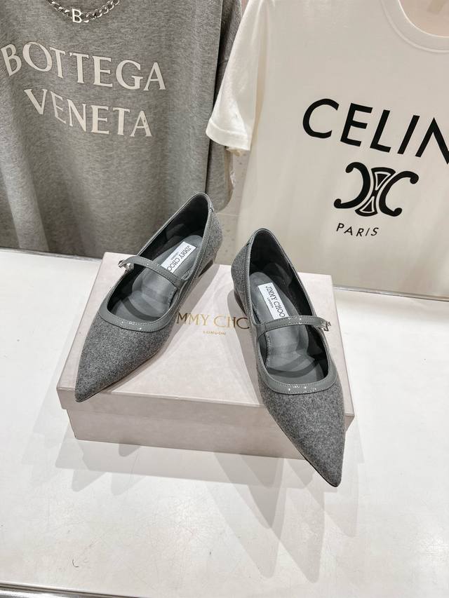 Jimmy Choo*|Jc 吉米周2025Ss春夏新款简约尖头平底玛丽珍单鞋