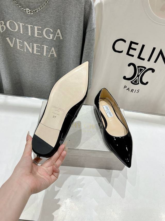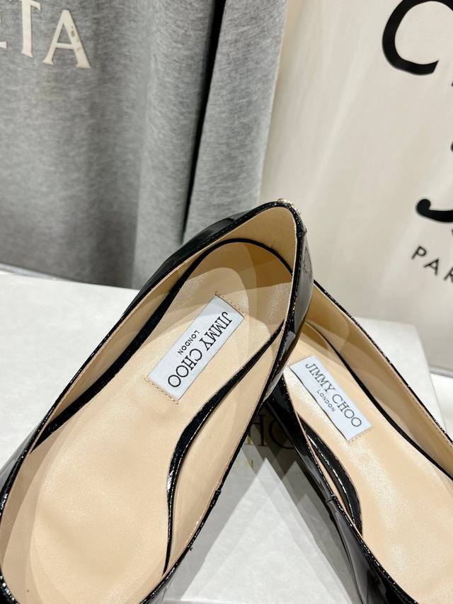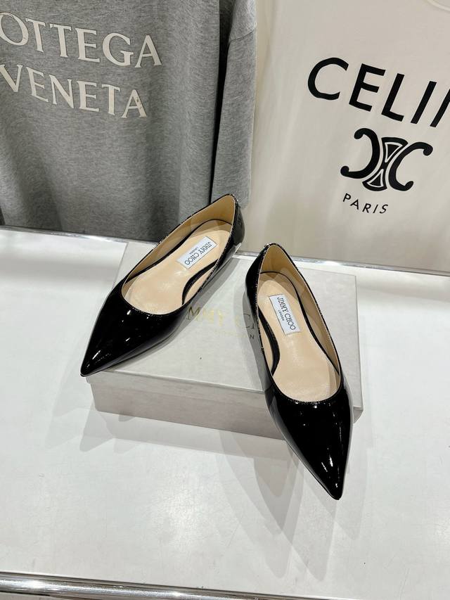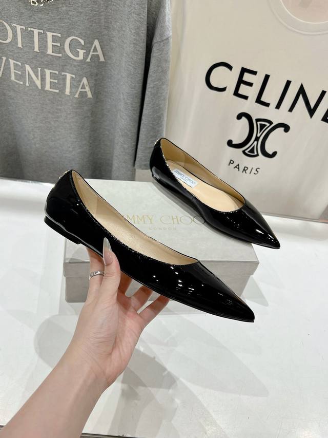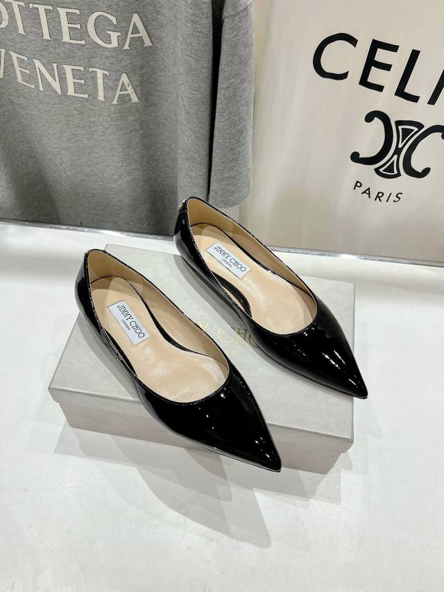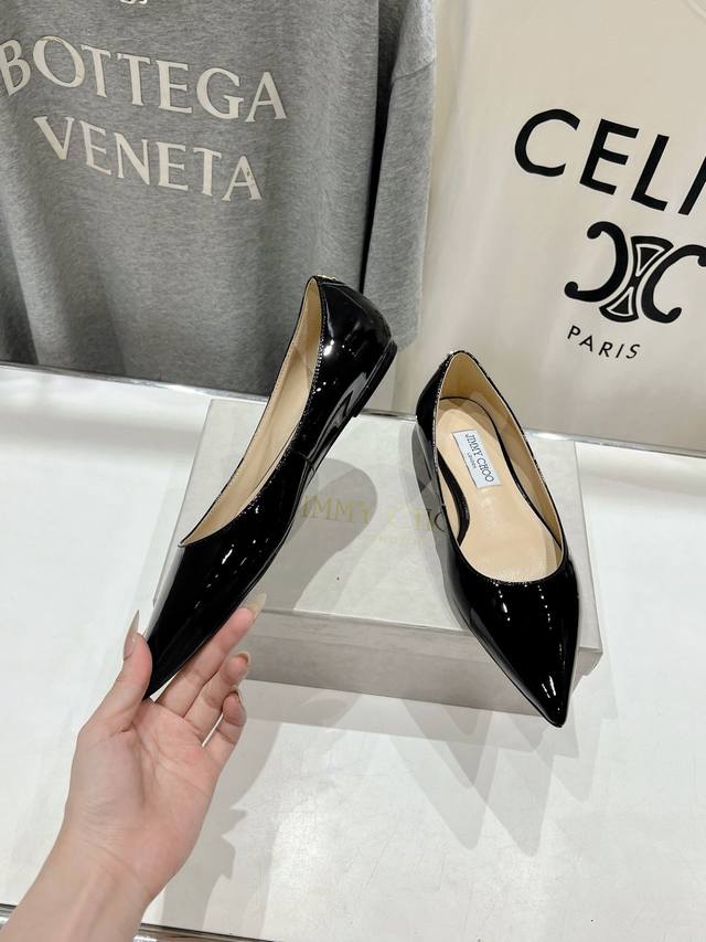 Jimmy Choo*|Jc 吉米周2025Ss春夏新款简约尖头漆皮平底单鞋