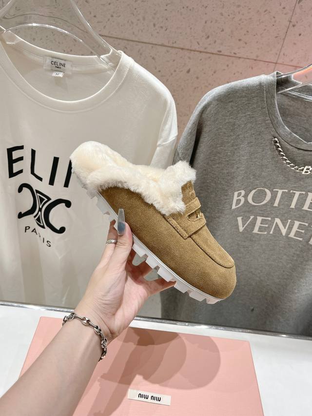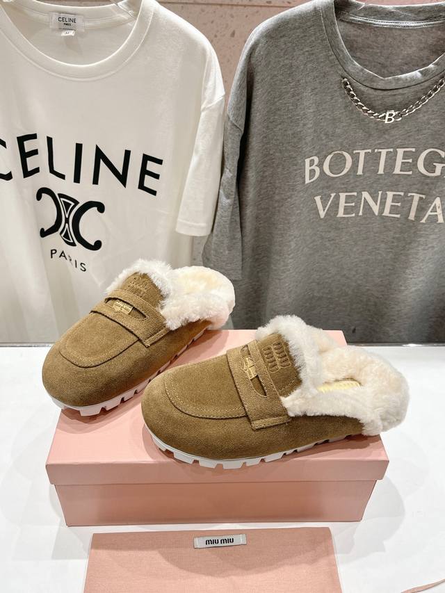 Miumiu 缪缪2025Ss秋冬最新火爆款勃肯穆勒毛毛拖鞋 半包拖
