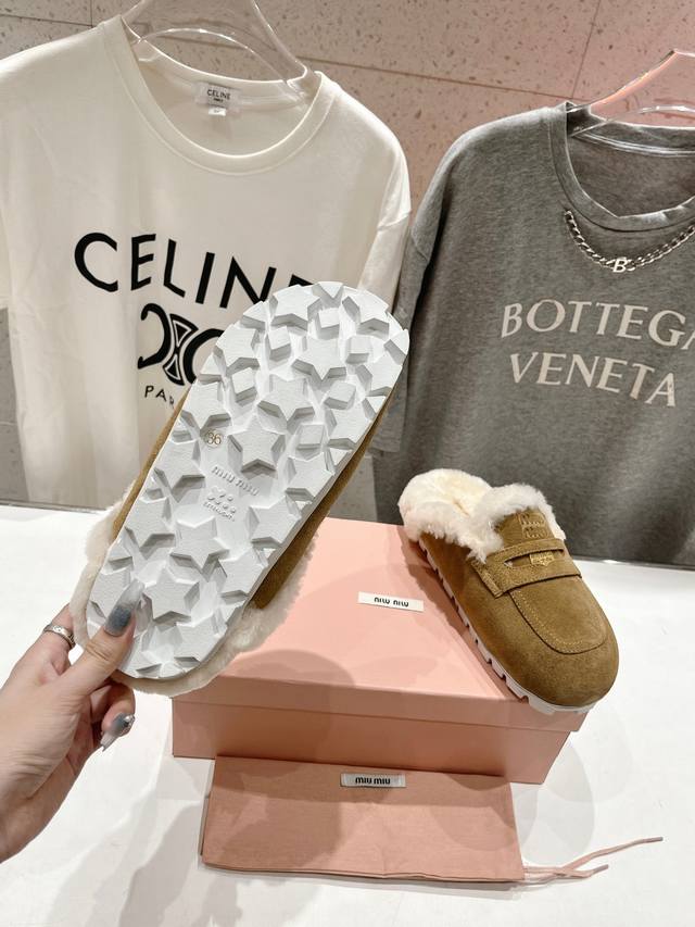 / 高版本出厂 Miumiu 缪缪2025Ss秋冬最新火爆款勃肯穆勒毛毛拖鞋 半包拖 原版倒模楦型,极致1:1形体 面料:进口牛反绒 里料:进口羊毛 大底:Zp开模