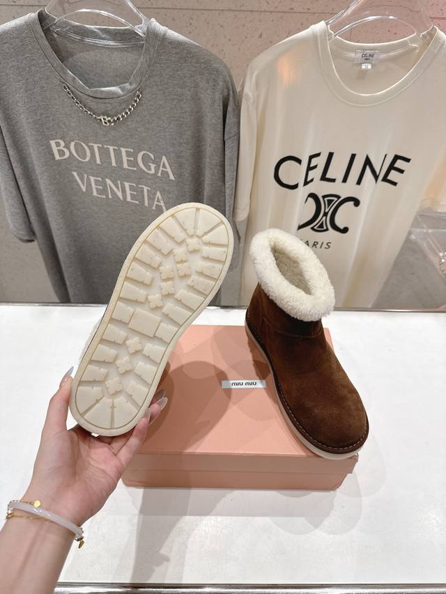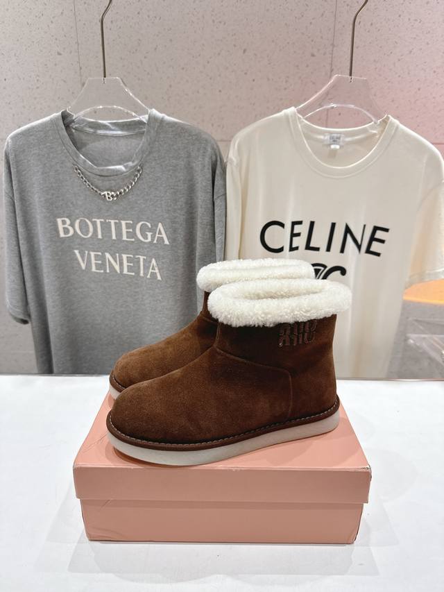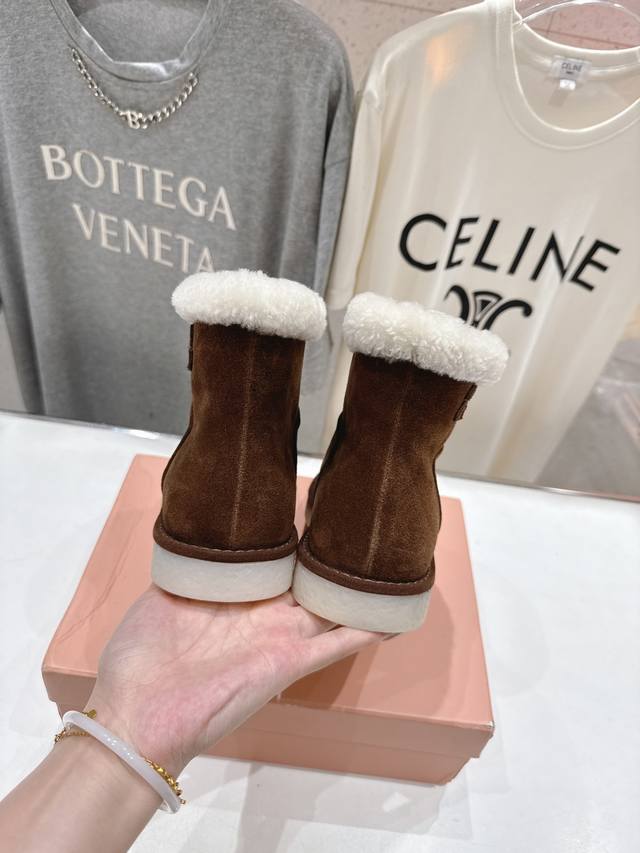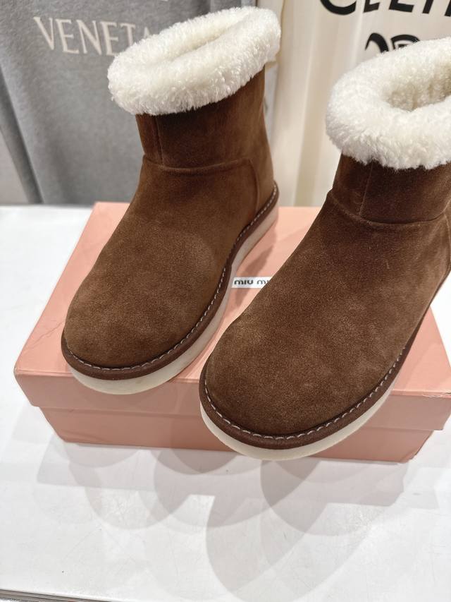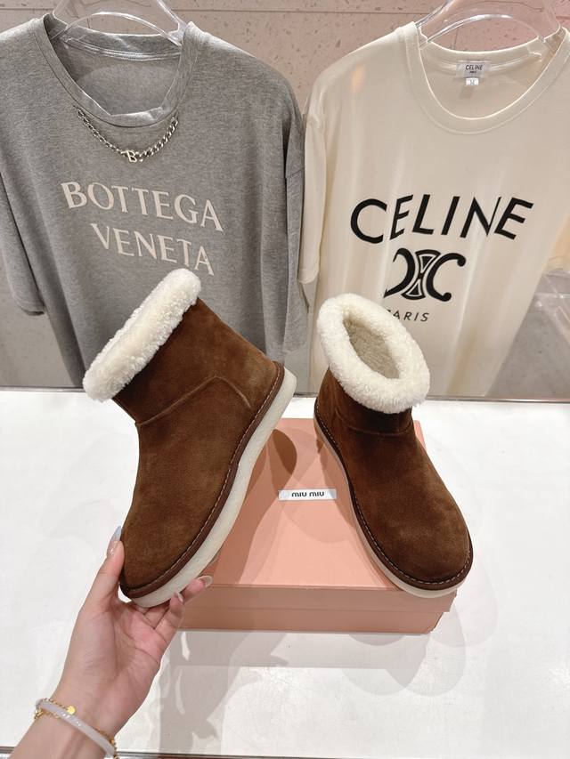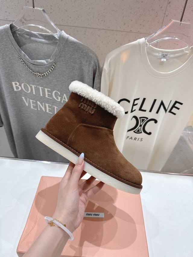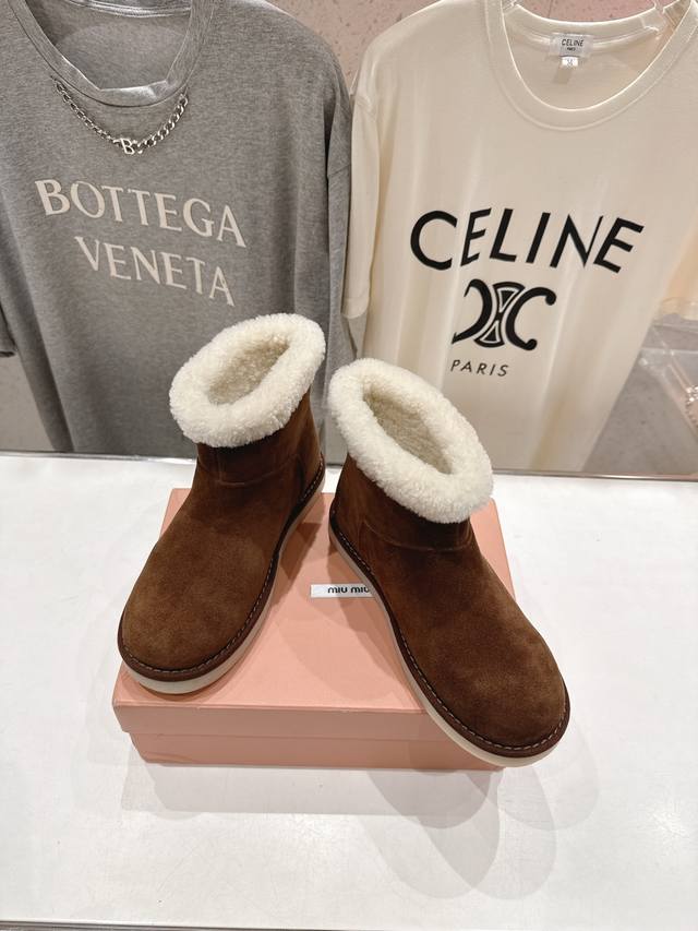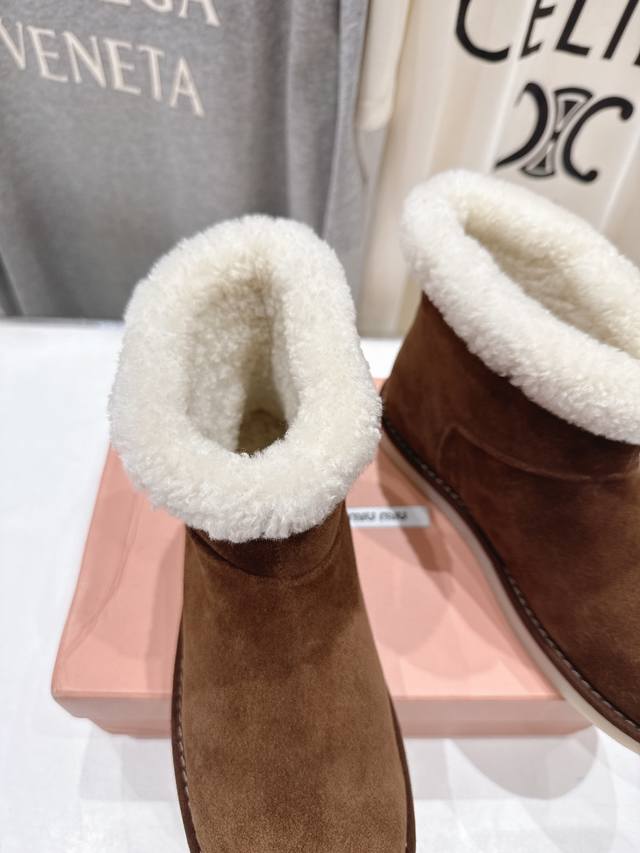 Miumiu 缪缪2025Ss秋冬走秀款F027 羊毛小短靴雪地靴毛毛鞋