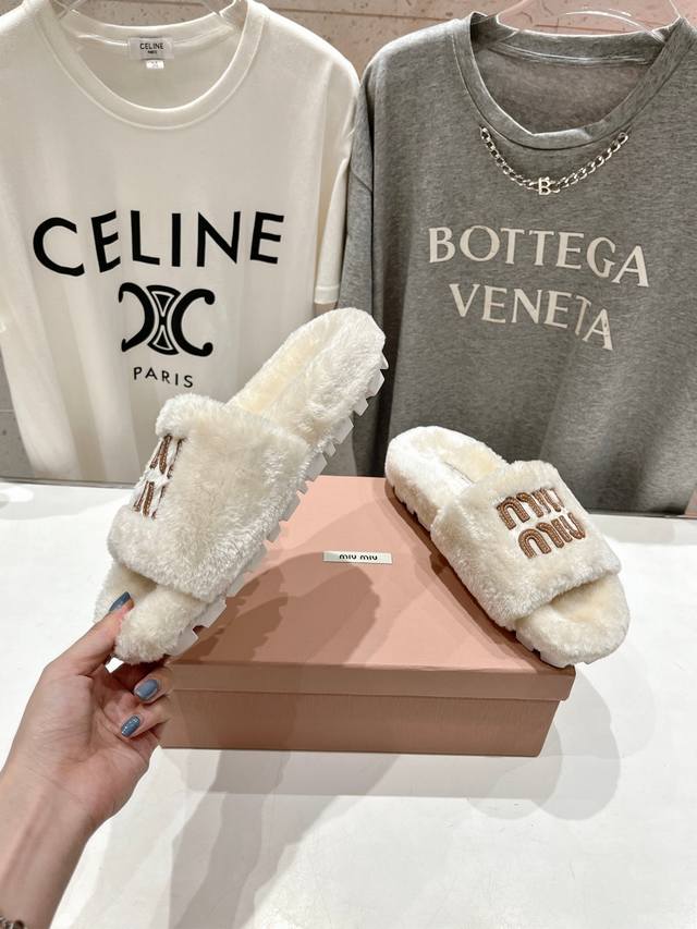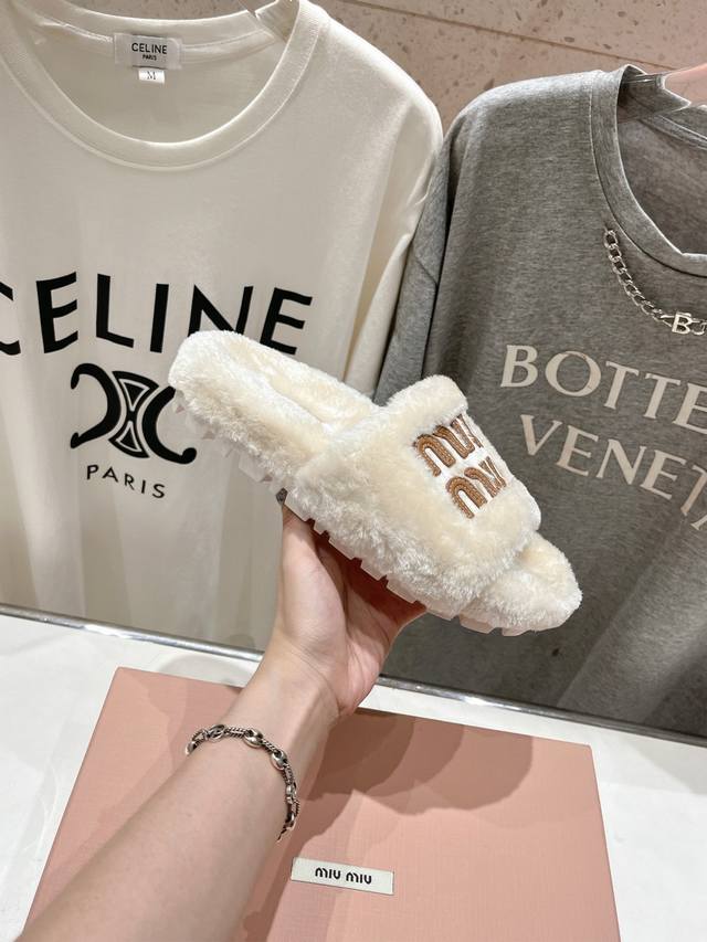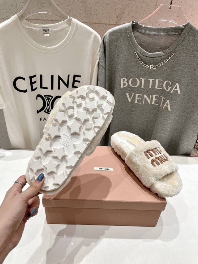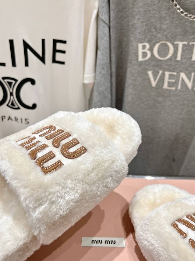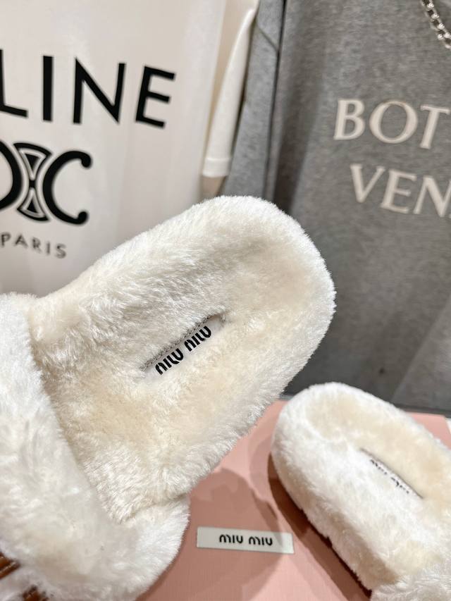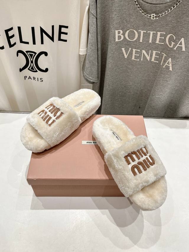 Miumiu 缪缪24Ss走秀新款 明星同款平底居家毛毛拖鞋,出现在各大时装杂志封面,闭眼入都是不会后悔 上脚非常舒服超舒适 Zp订制面料