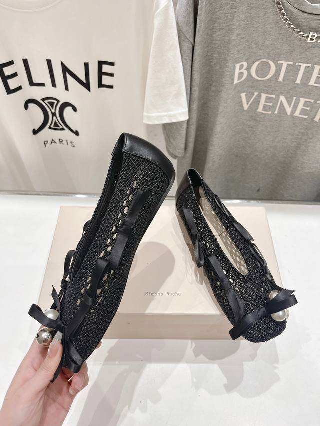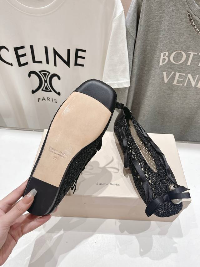 Simone Rocha 25Ss新款Sr镂空编织平底芭蕾舞鞋
