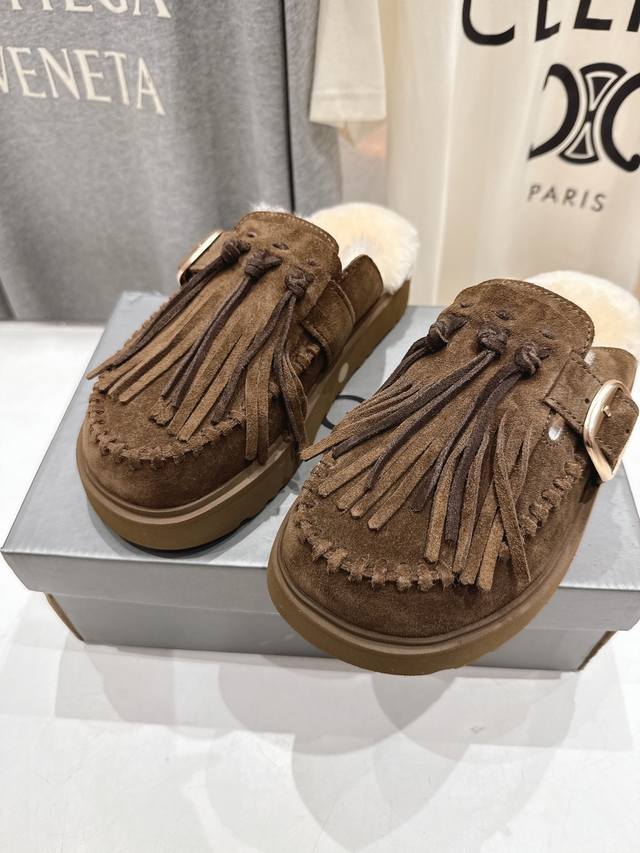 Ugg冬季F028 2025Ss新款时尚厚底一脚蹬羊毛拖鞋雪地靴