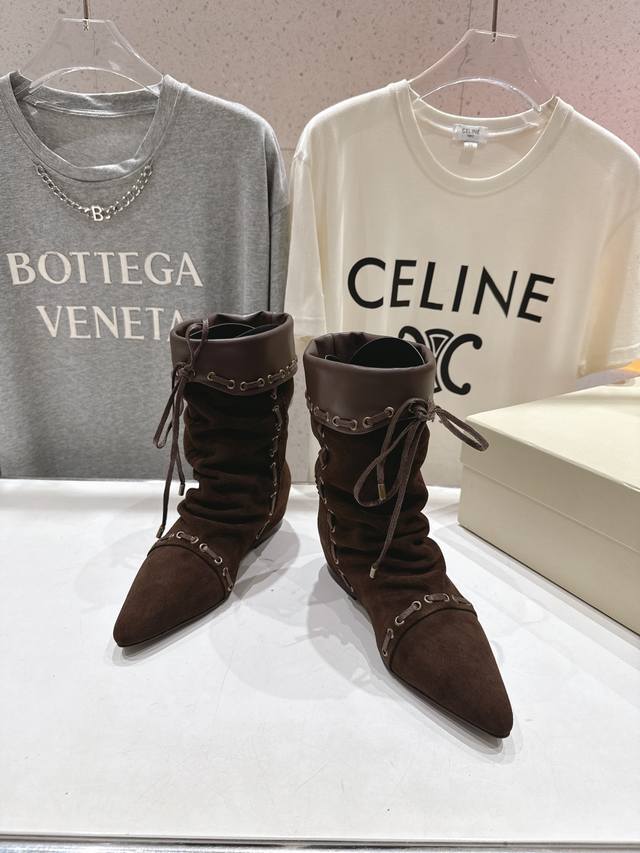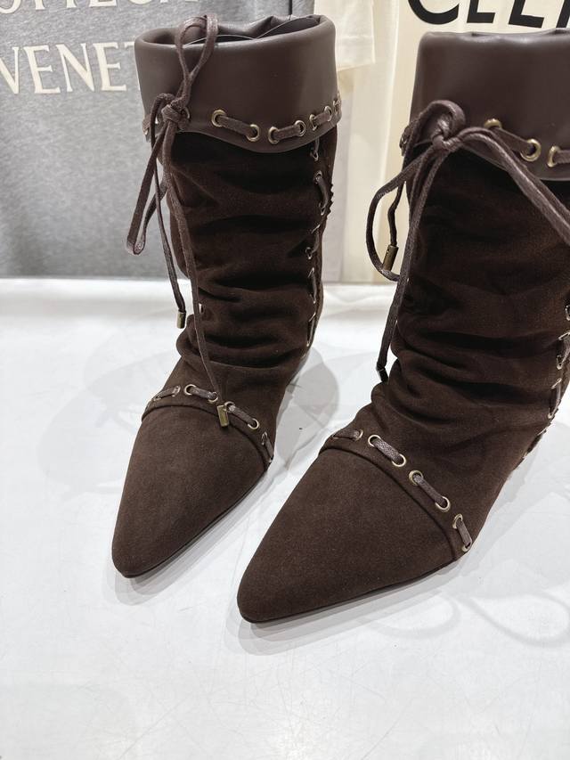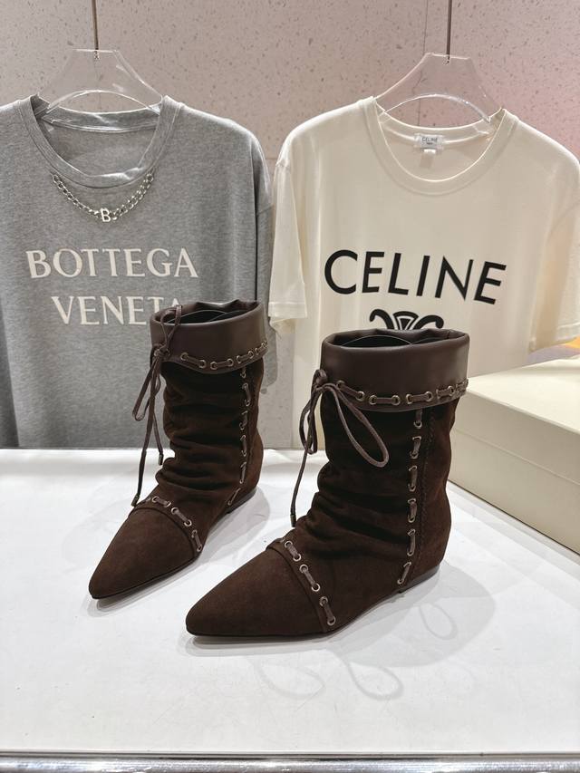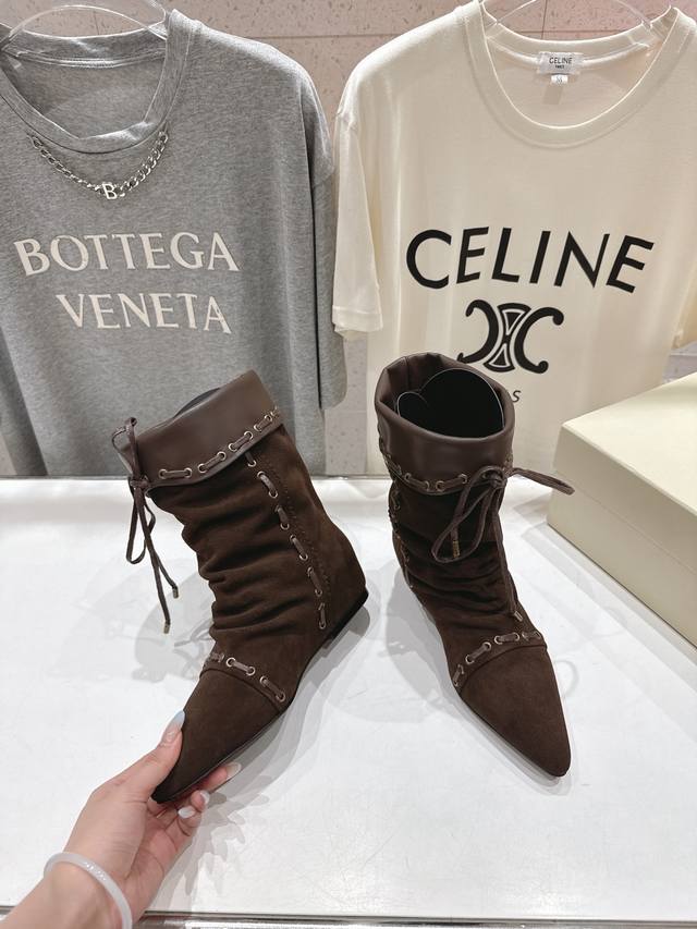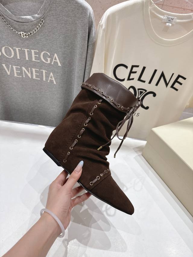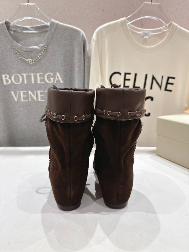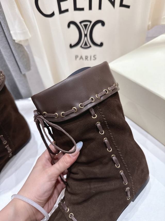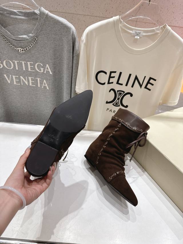 Unfolio.F012 25Ss秋冬新款复古印第安风绑带中筒靴骑士靴短靴