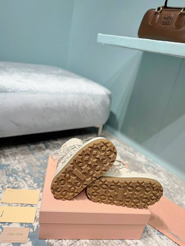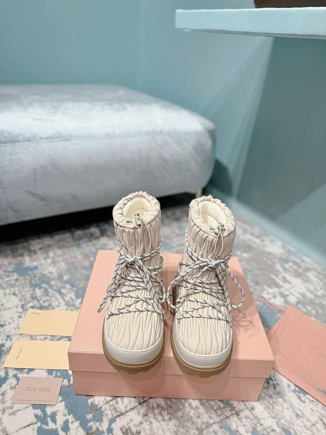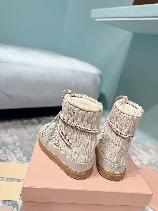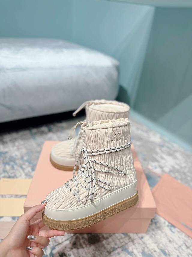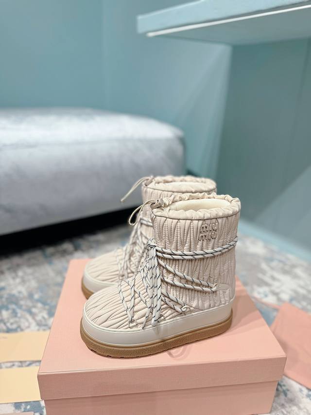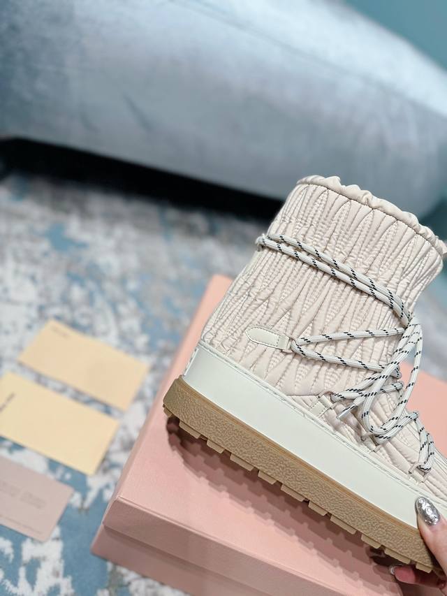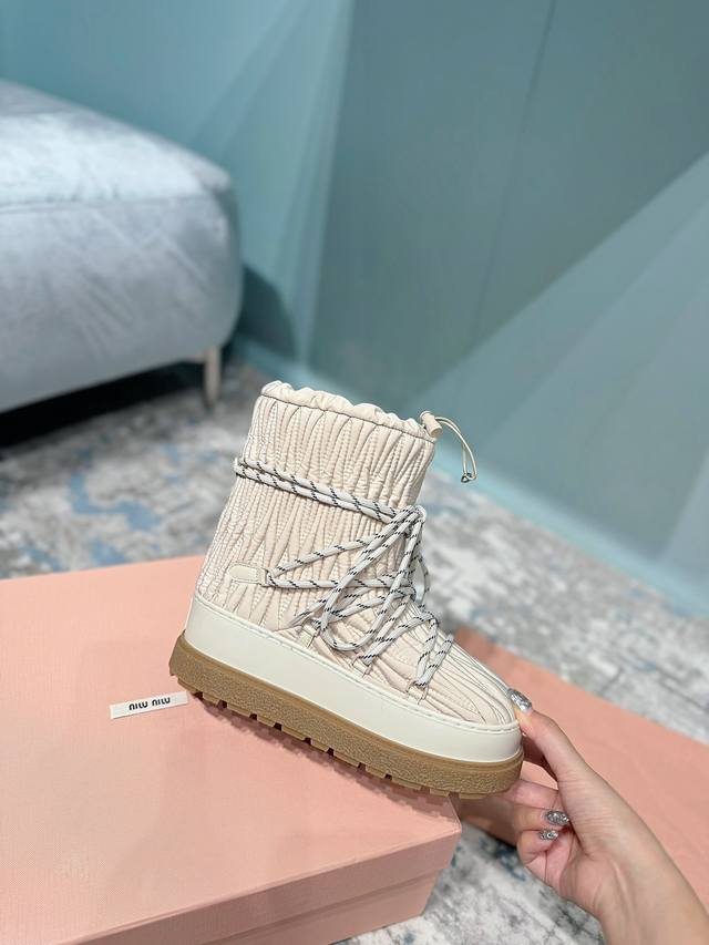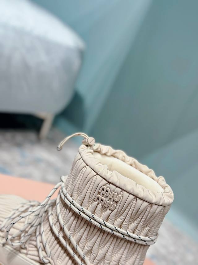 高版本 Miumiu缪缪24Ss系列,女士徽标尼龙华达呢雪地派对金属标双色厚底收缩系带羽绒雪地靴滑雪靴胖头靴!