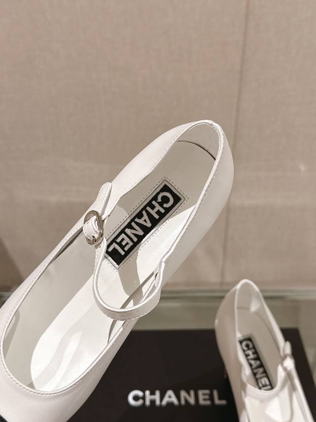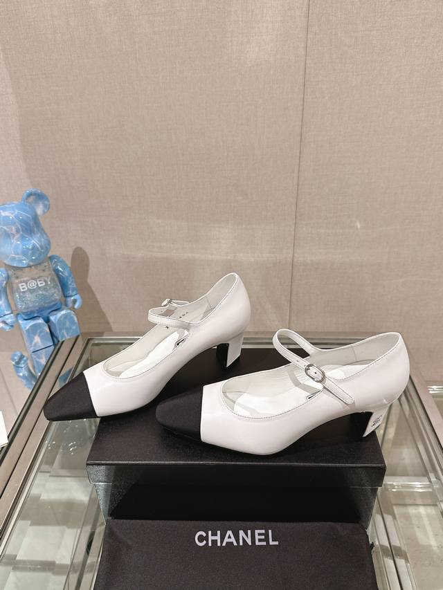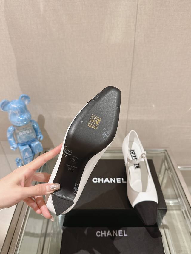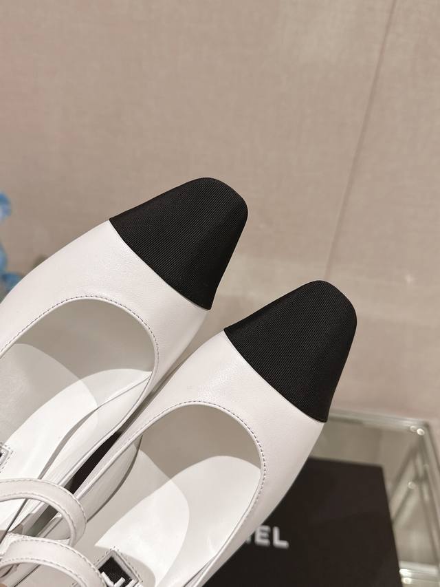 24P新款chane*小香斜方头玛丽珍三角高跟单鞋