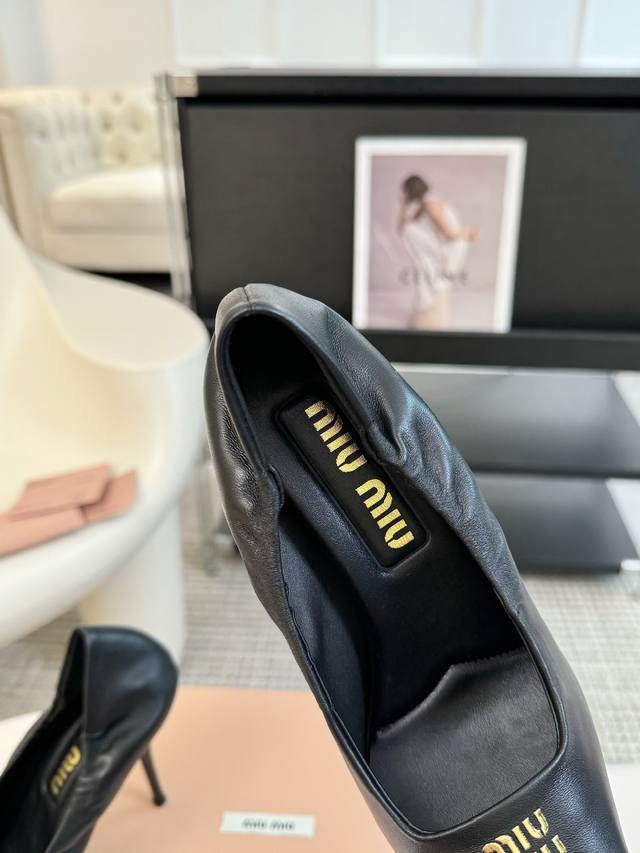 / 高跟 Miu Miu 24Ss秋冬季 布洛克小方头乐福鞋 这款布洛克鞋线条简约设计经典 鞋面采用了进口 羊皮 羊皮内里 鞋底采用进口真皮大底 Size:#35-