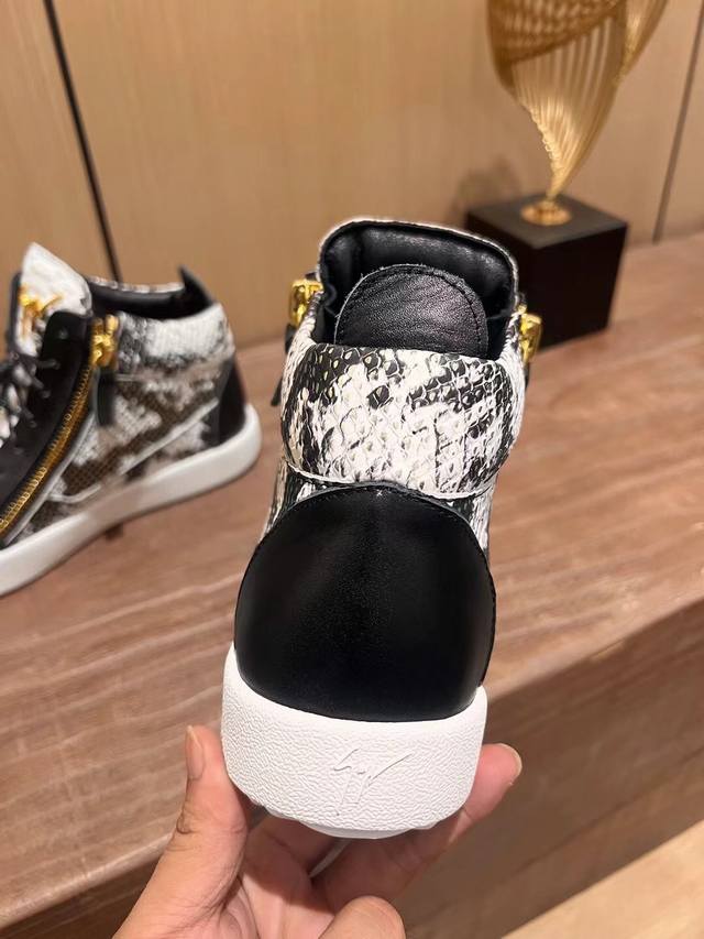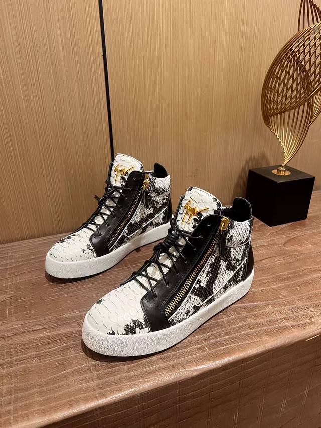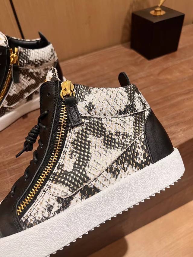 黑白蛇纹!最新最高版本!重新开模定制! 里外全牛皮 情侣款giuseppe Zanotti 朱塞佩 萨诺第 高端单品原版高档合金属饰扣,头层小牛皮内里 开私模原