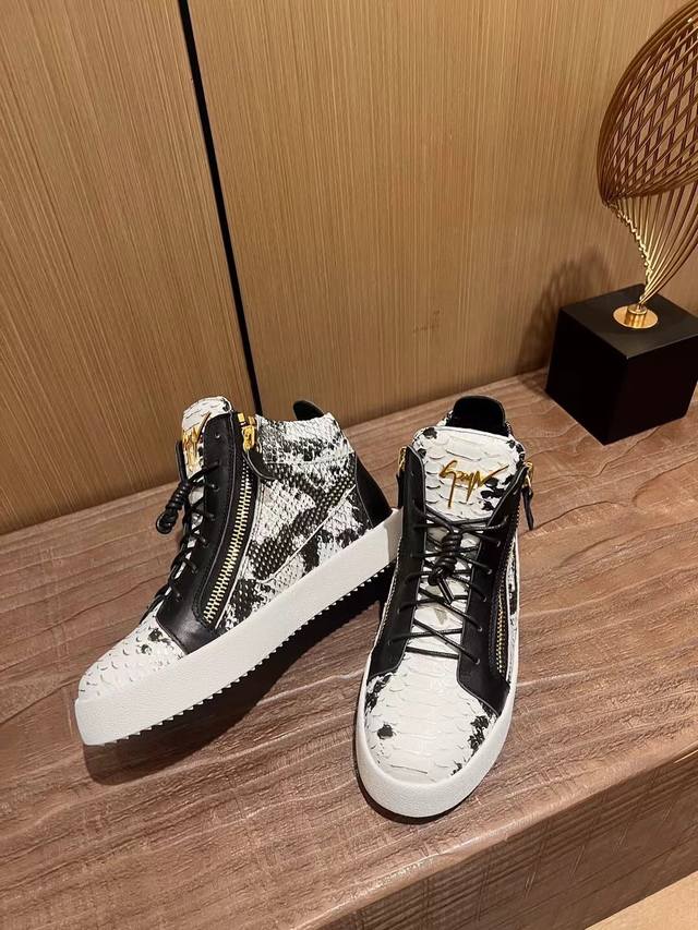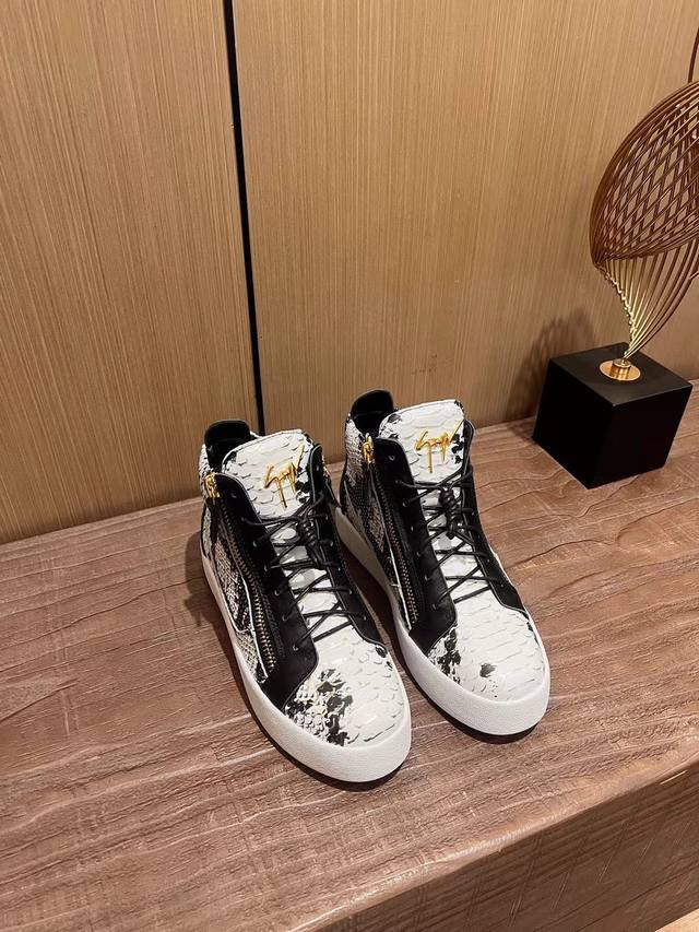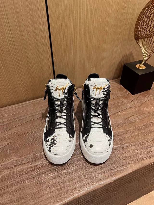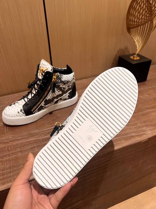 黑白蛇纹!最新最高版本!重新开模定制! 里外全牛皮 情侣款giuseppe Zanotti 朱塞佩 萨诺第 高端单品原版高档合金属饰扣,头层小牛皮内里 开私模原版大底 绝对的高端货,女款35-40,男款38-46,高端定制两天取货,此款外面品质众多,不要品质只要价格的勿来。