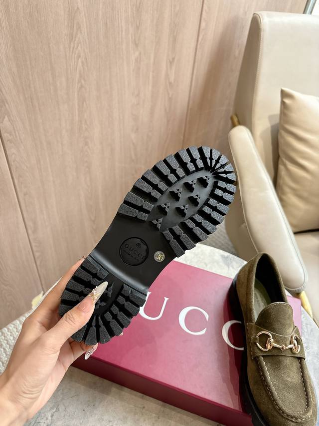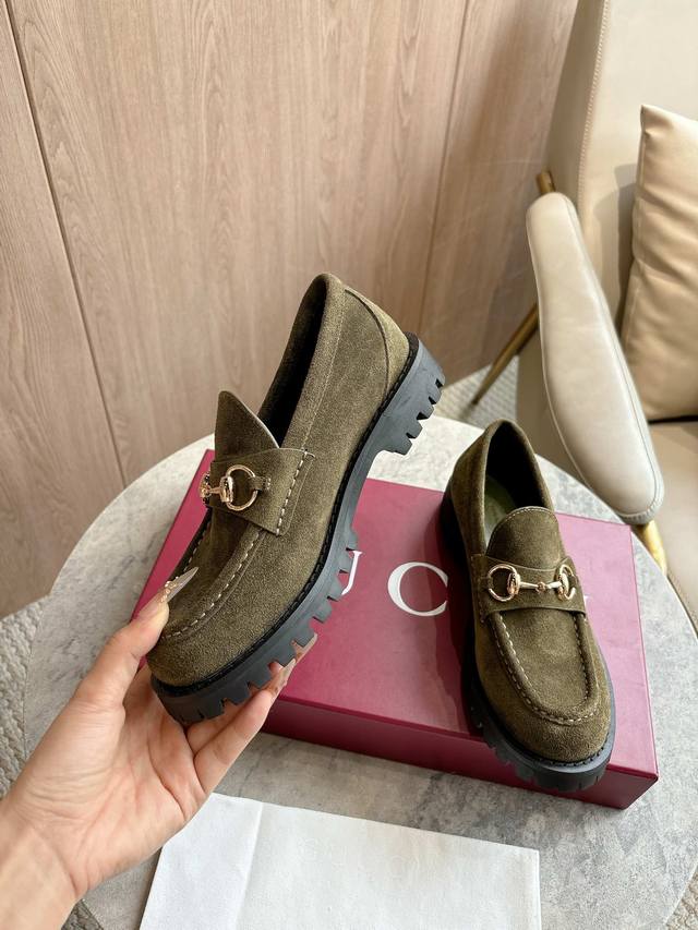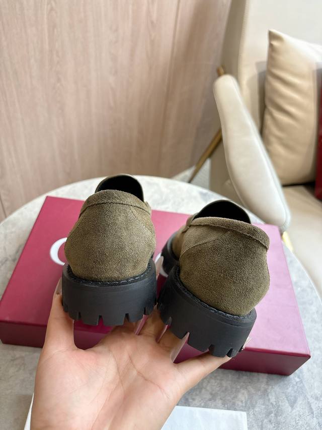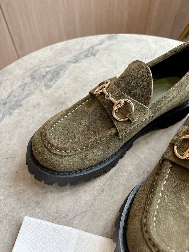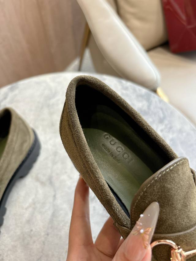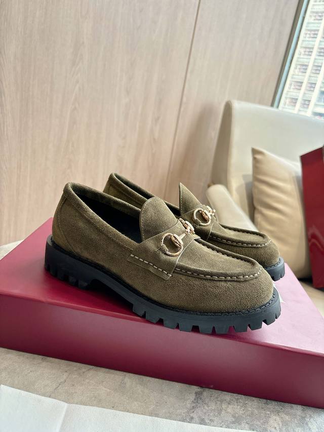 0453-8 绿 35-42 精巧细节为这款乐福鞋注入优雅气息。以光滑绒面材质精心打造,搭配沟纹橡胶鞋底,令整款设计更添魅力。浅金色调马衔扣为这款经典而不失现代风范的设计注入品牌标识内涵。