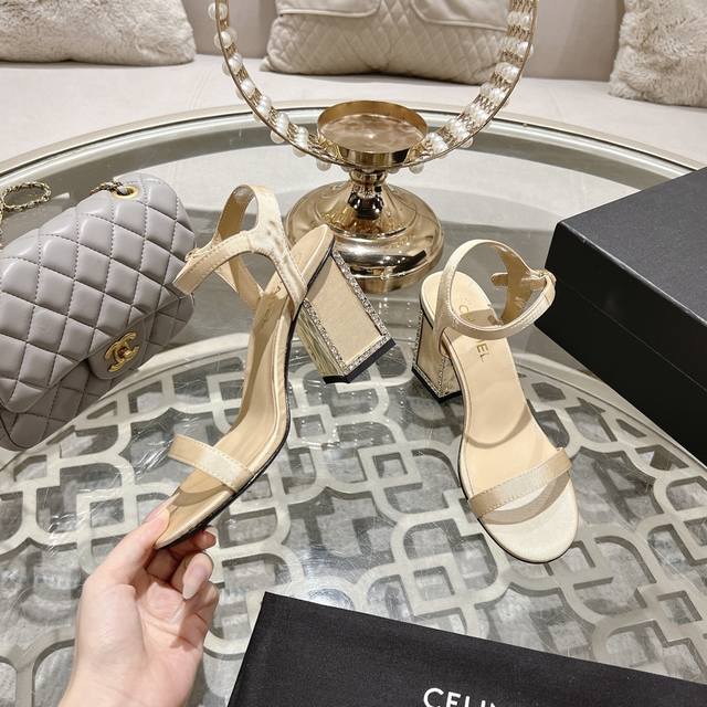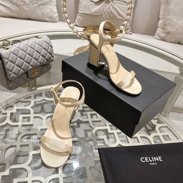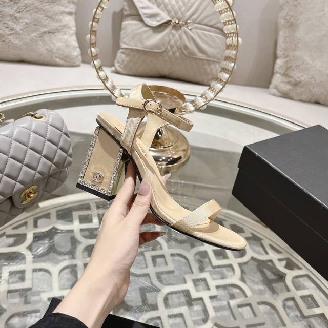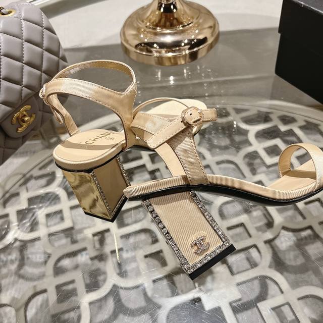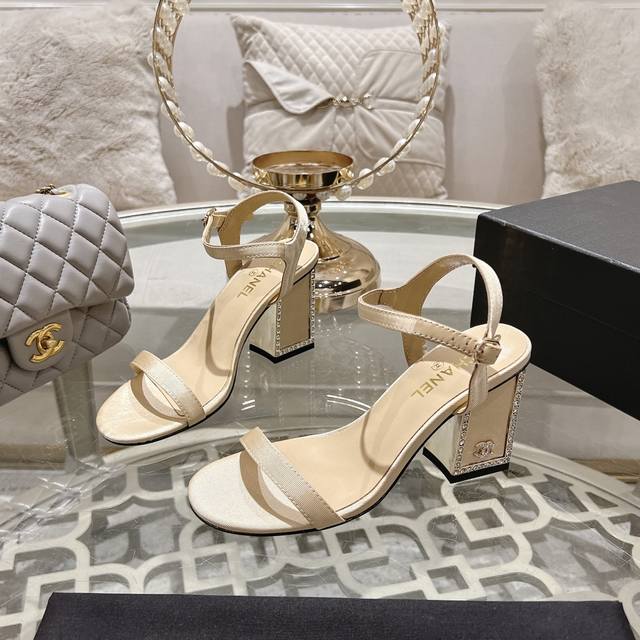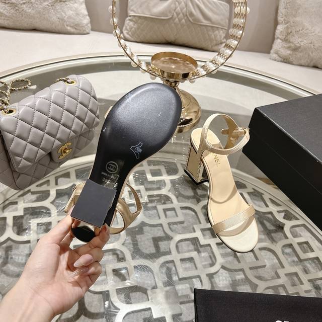 2025早春新款一字带凉鞋chanel小香官网同步高版本更新款粗跟方跟最新款凉鞋