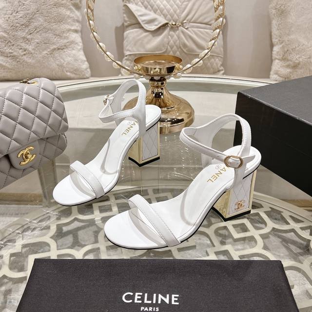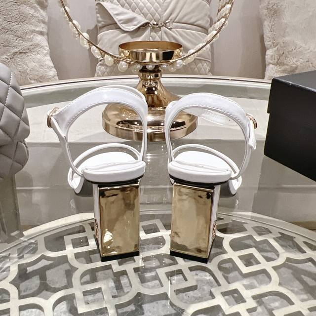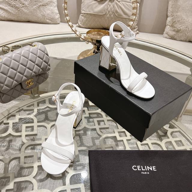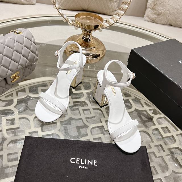 2025早春新款一字带凉鞋chanel小香官网同步高版本更新款粗跟方跟最新款凉鞋