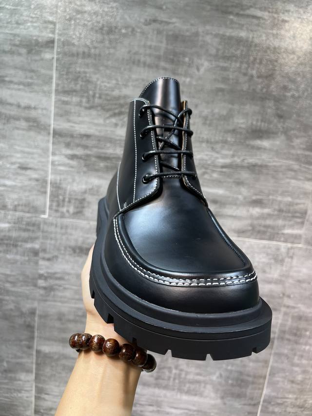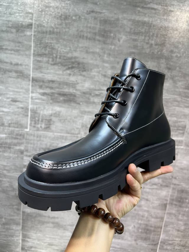 2054春秋最新款maison Margiela 的前卫没学在这款皮质德比鞋中得以淋漓展现,方头设计盒光泽饰面风格鲜明,单品采用厚实tpu橡胶底,Maison Margiela 系带德比靴,原版一比一复刻大底开模,面料进口开边珠,里布垫脚牛皮,全套包装39-45