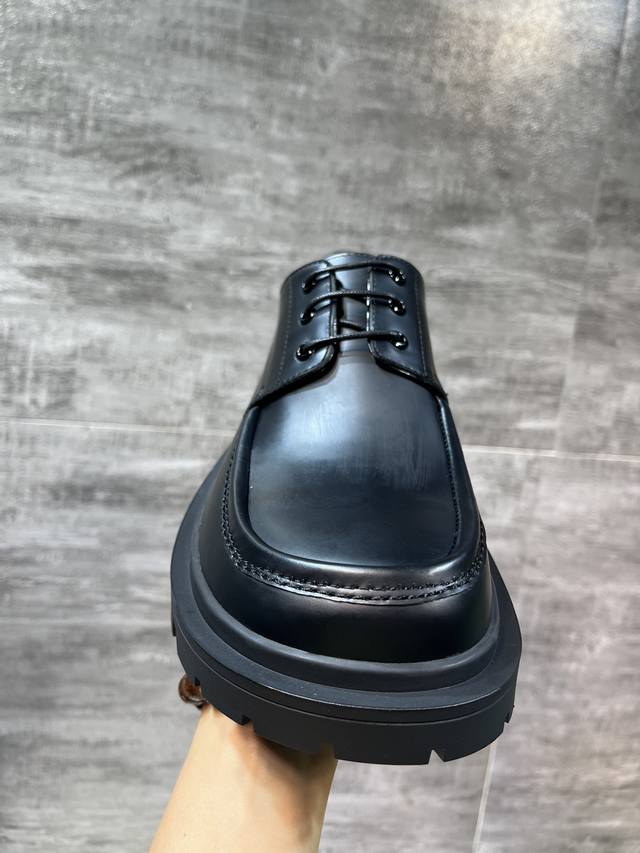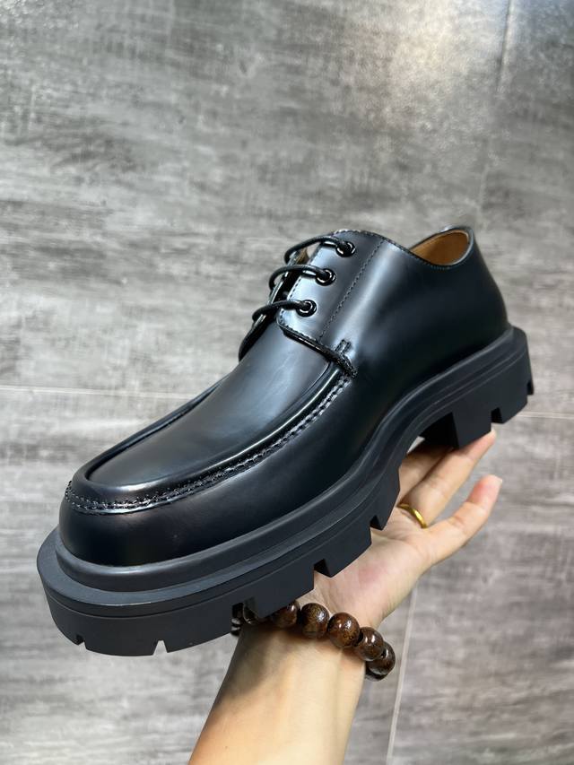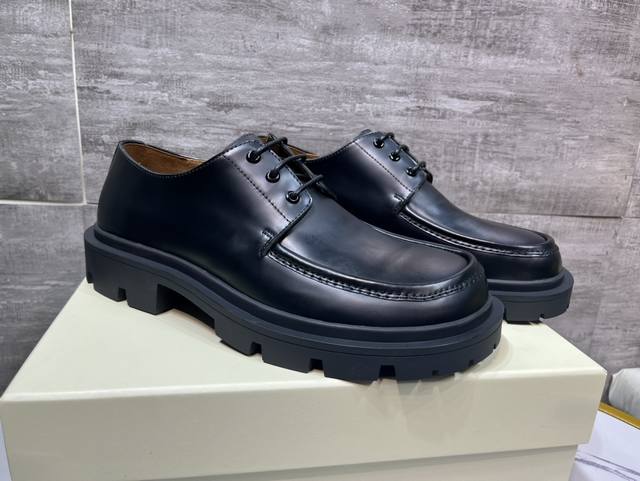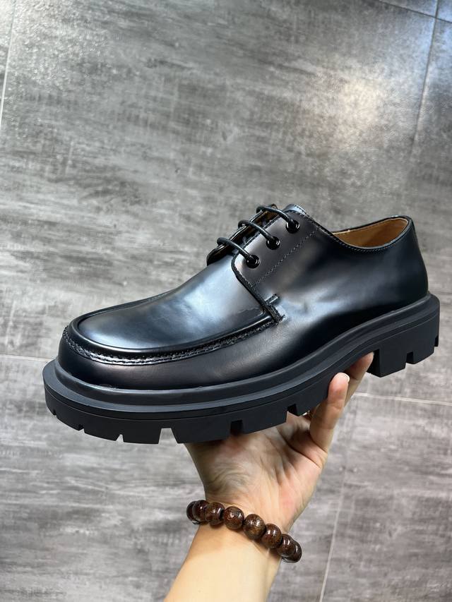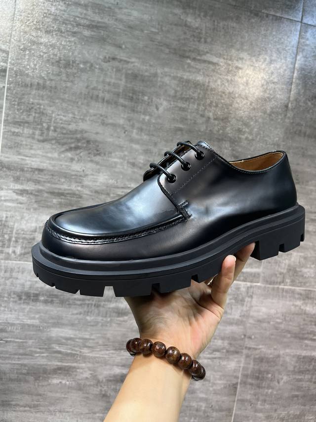 2054春秋最新款maison Margiela 的前卫没学在这款皮质系带德比鞋中得以淋漓展现,方头设计盒光泽饰面风格鲜明,单品采用厚实tpu橡胶底,Maiso