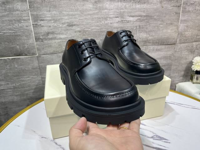 2054春秋最新款maison Margiela 的前卫没学在这款皮质系带德比鞋中得以淋漓展现,方头设计盒光泽饰面风格鲜明,单品采用厚实tpu橡胶底,Maison Margiela 低帮系带德比鞋,原版一比一复刻大底开模,面料进口开边珠,里布垫脚牛皮,全套包装39-45码