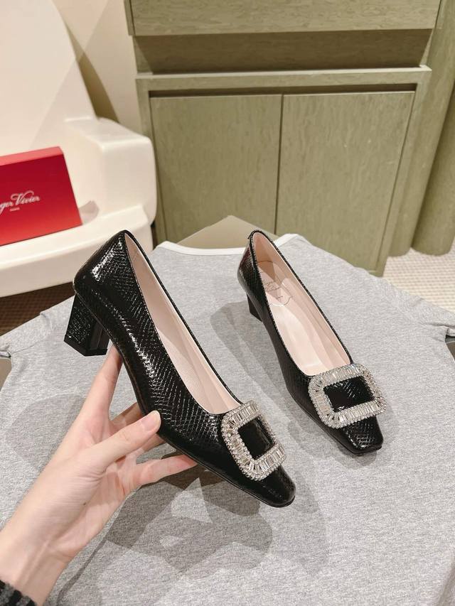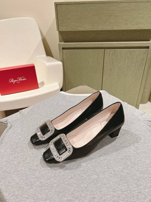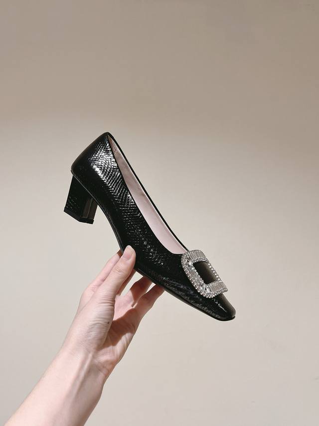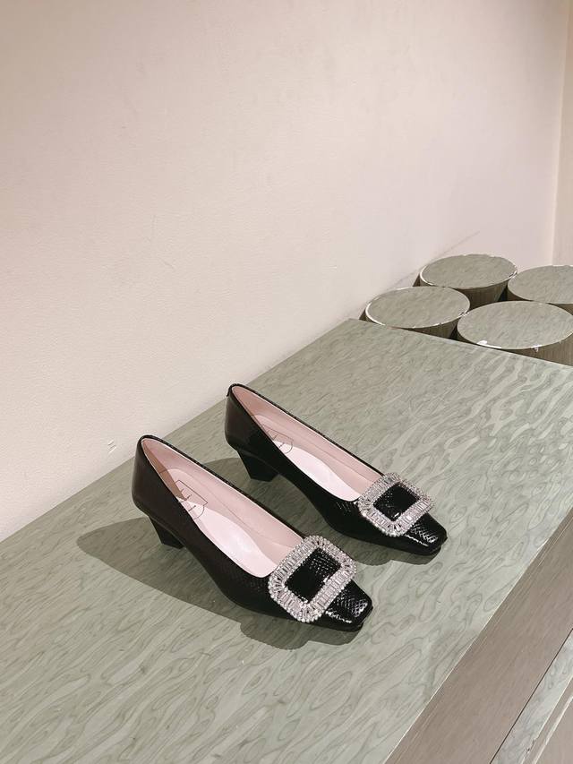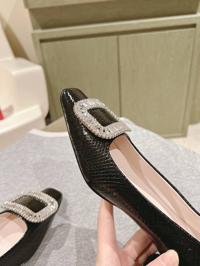 223专柜jewel Heel系列新款蛇纹钻方扣单鞋上新 !