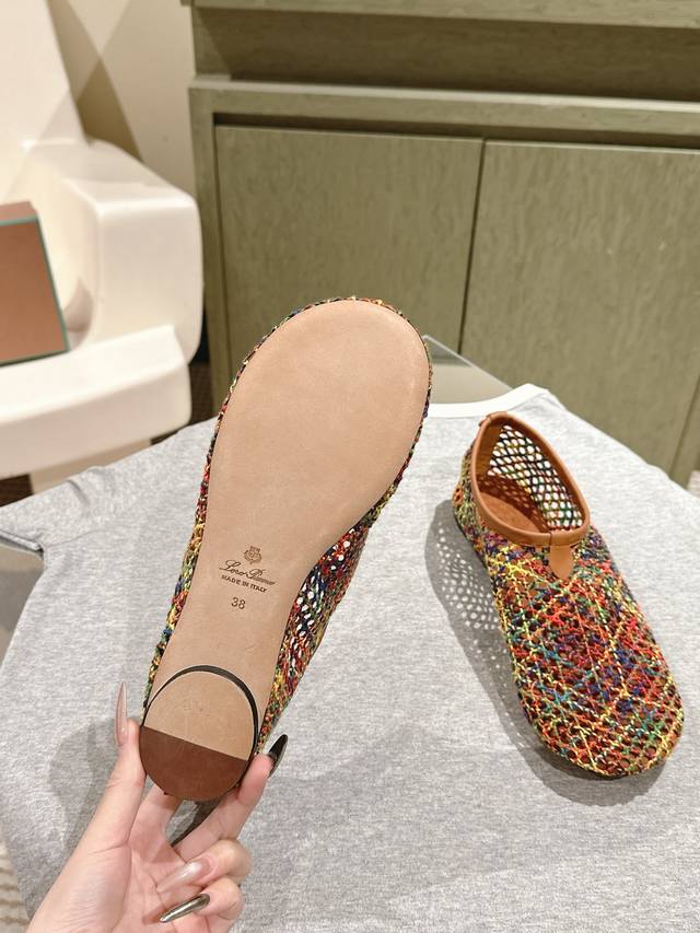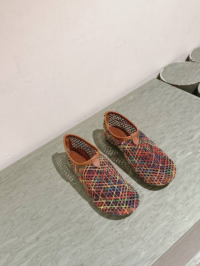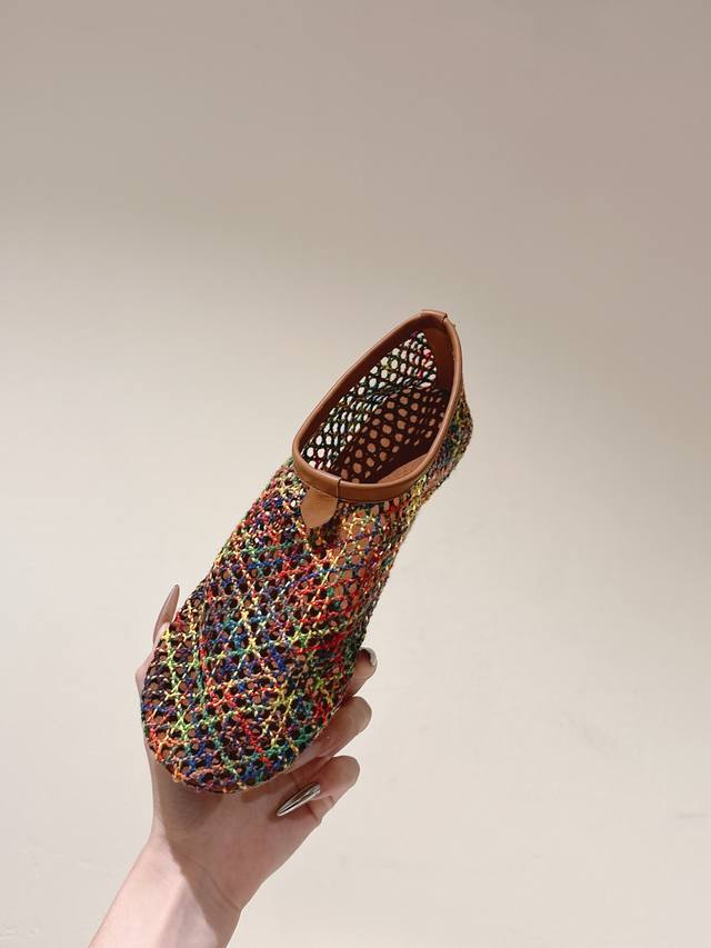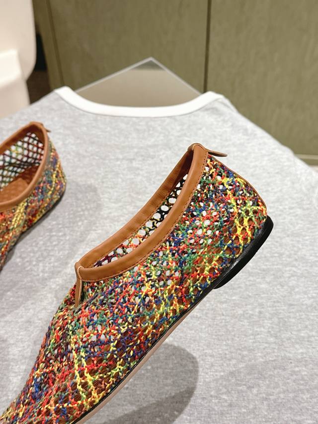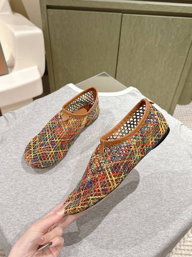 新品网面鞋|鞋面采用 编制网纹制作工艺|一比一复原专柜套包工艺,舒适,大方,轻便,百搭的一款平底芭蕾舞鞋,镂空钩针鞋穿上有档次而有个性!是M M少不可缺的一双美鞋|高难度制作流程原版意大利真皮大底