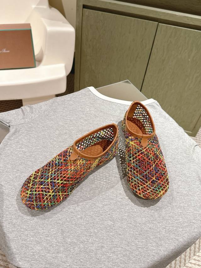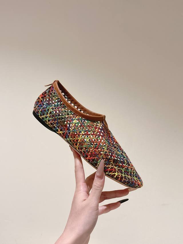 225 新品网面鞋|鞋面采用 编制网纹制作工艺|一比一复原专柜套包工艺,舒适,大方,轻便,百搭的一款平底芭蕾舞鞋,镂空钩针鞋穿上有档次而有个性!是M M少不可缺