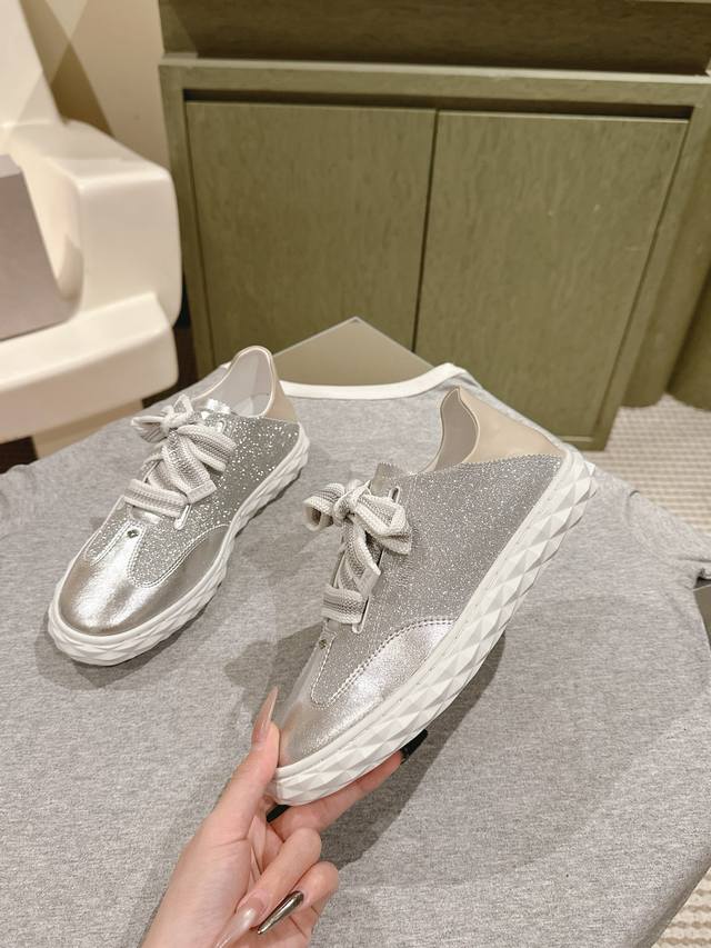 Jimmy Choo*最新休闲鞋,专柜主打系列!代购级别!面料选用原版一致牛皮豹纹元素,搭配Jc元素的珍珠刺绣襄钻工艺,绝绝子的系列组合!上脚超级舒适!内里顶级羊皮!