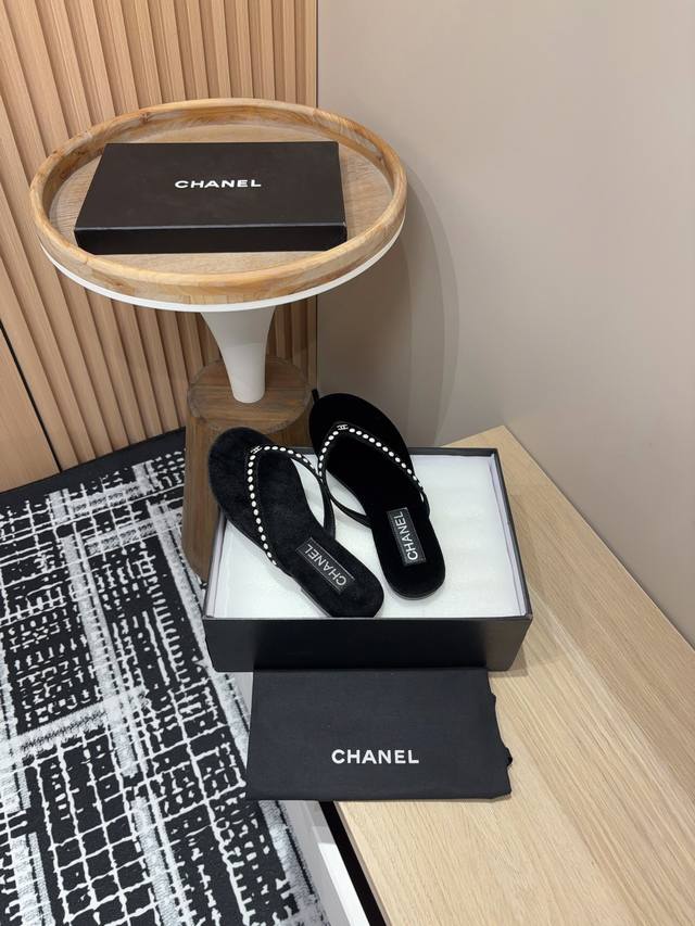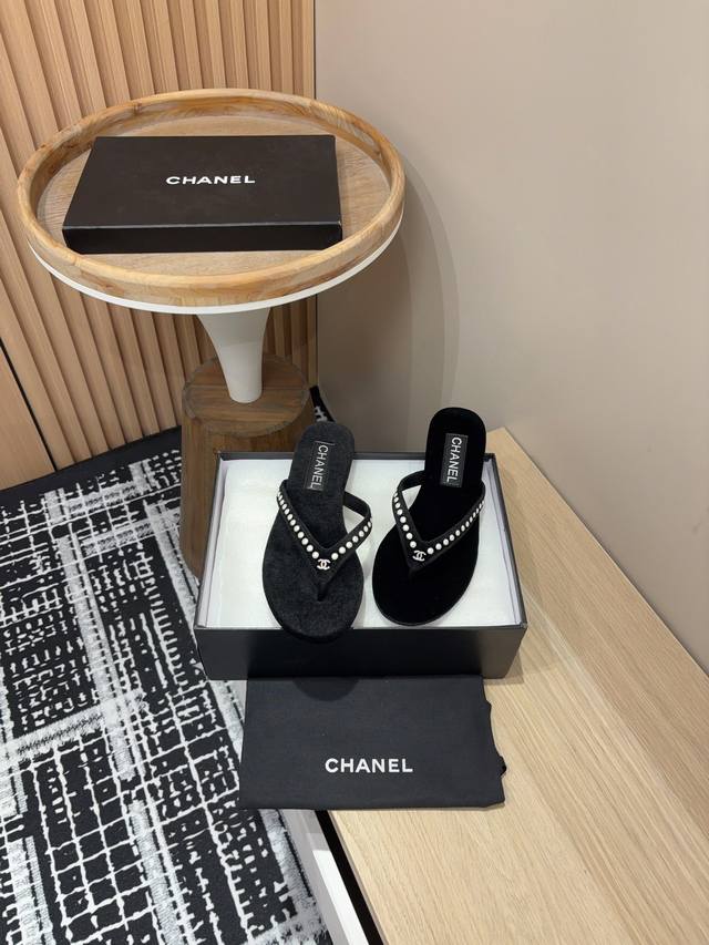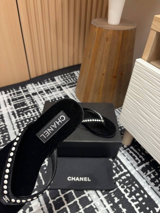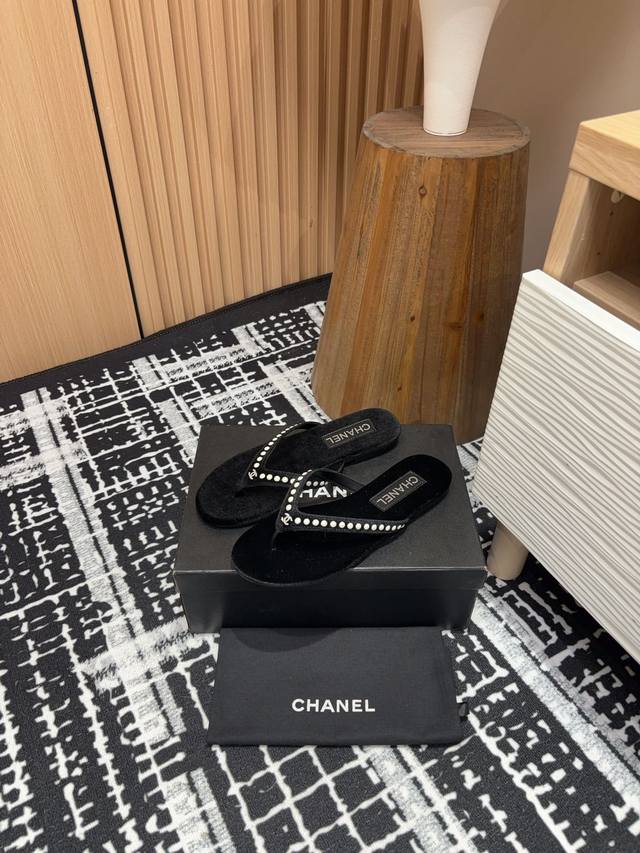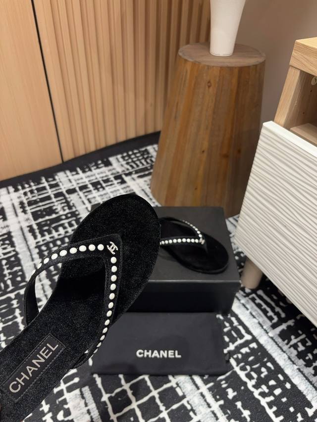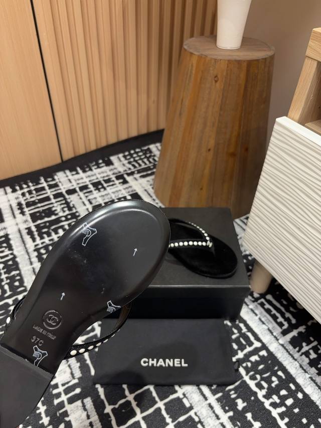 24Fw夏季新款chane*小香珍珠水钻夹脚人字拖鞋