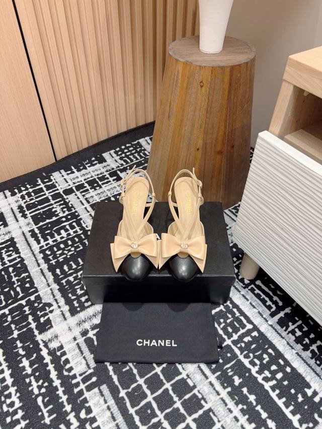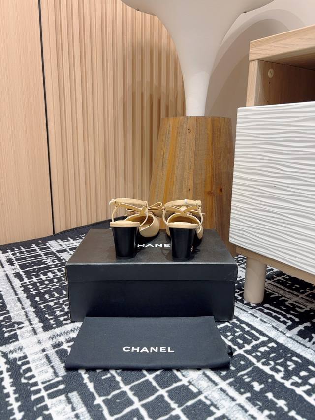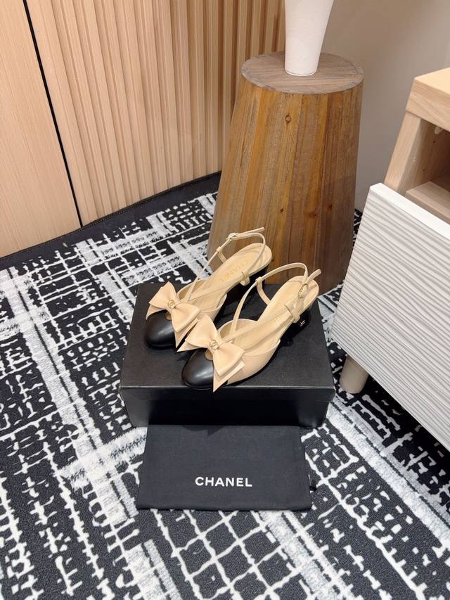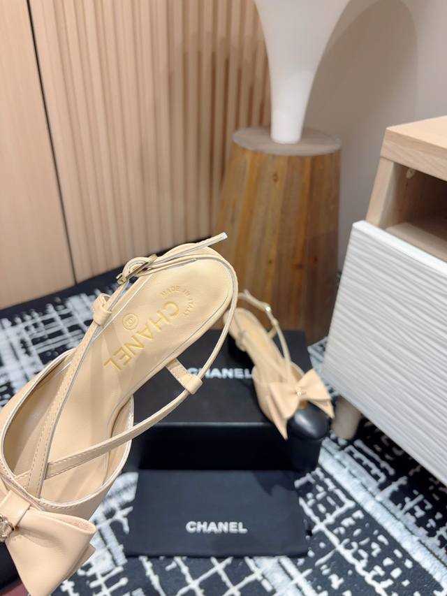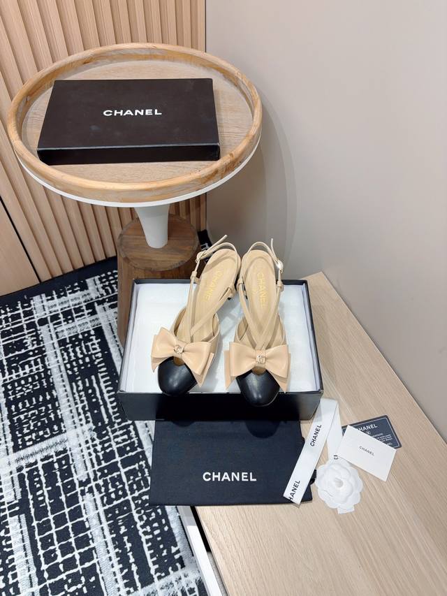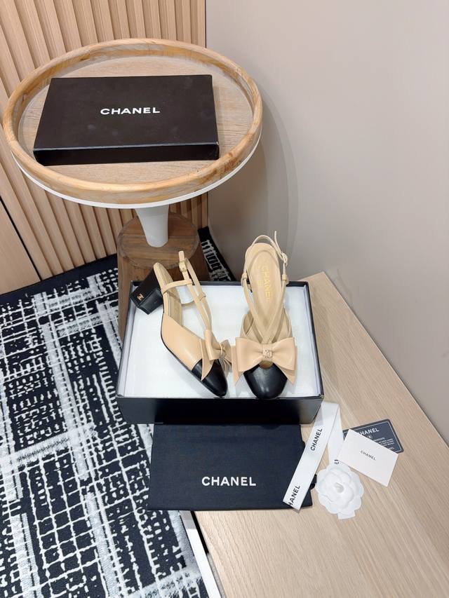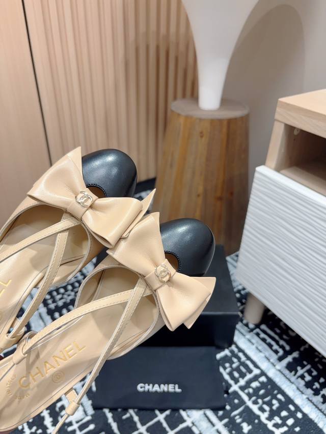 24Fw新款chane*小香镂空蝴蝶结粗跟单鞋 凉鞋
