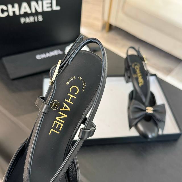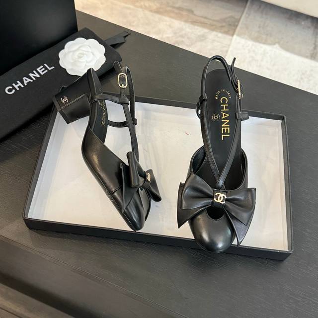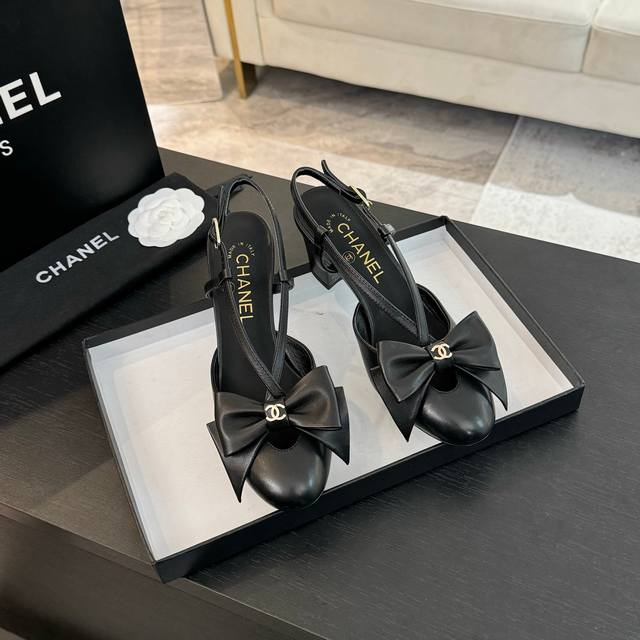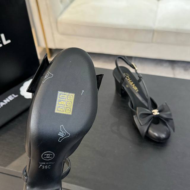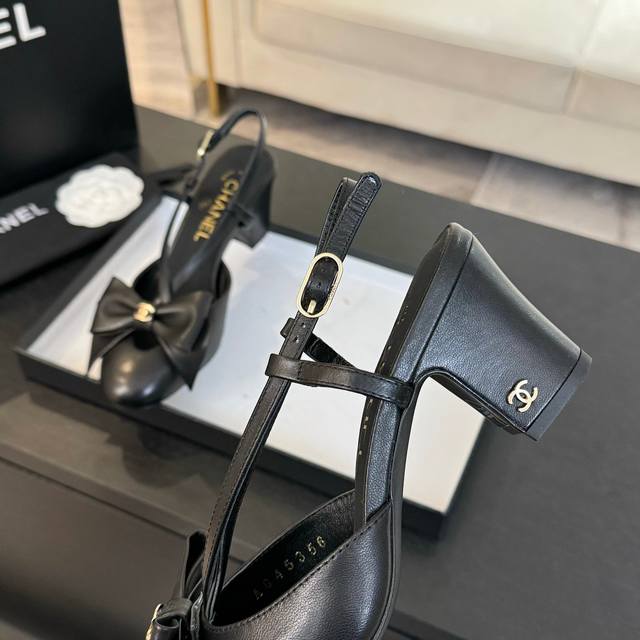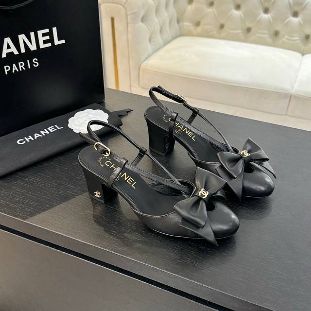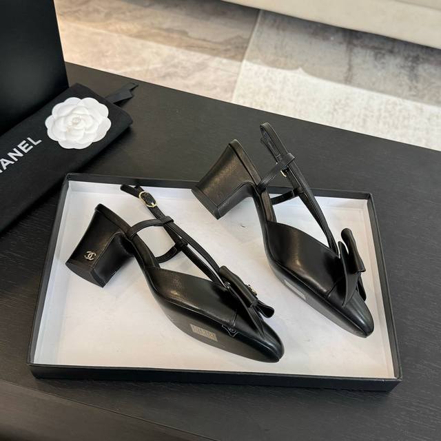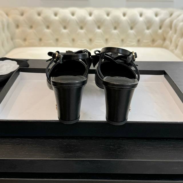 24Fw新款chane*小香镂空蝴蝶结粗跟单鞋 凉鞋