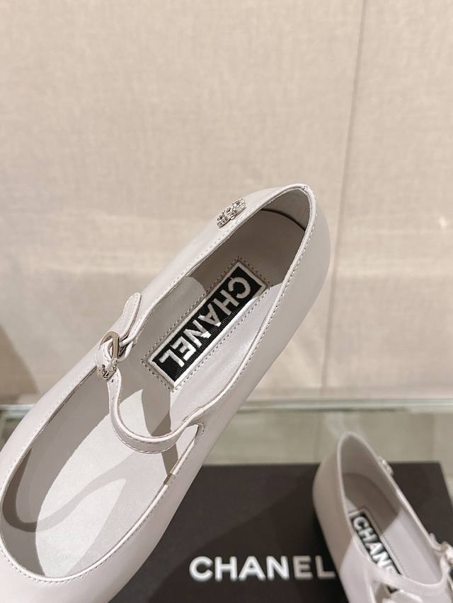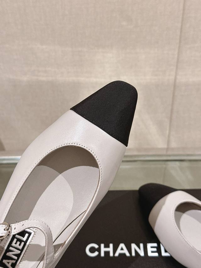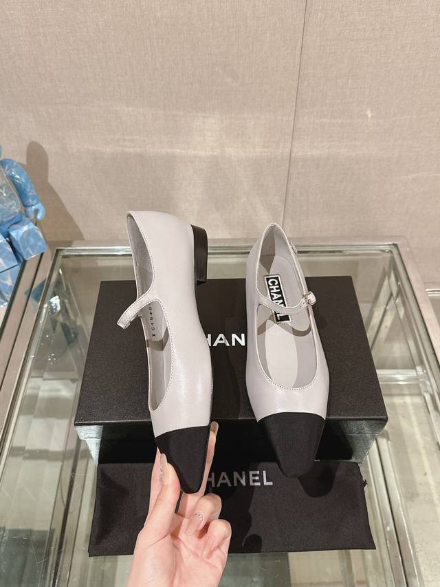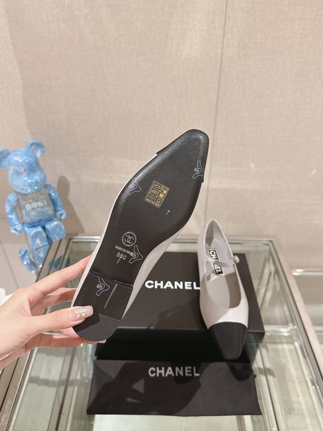 24P新款chane*小香斜方头玛丽珍平底单鞋