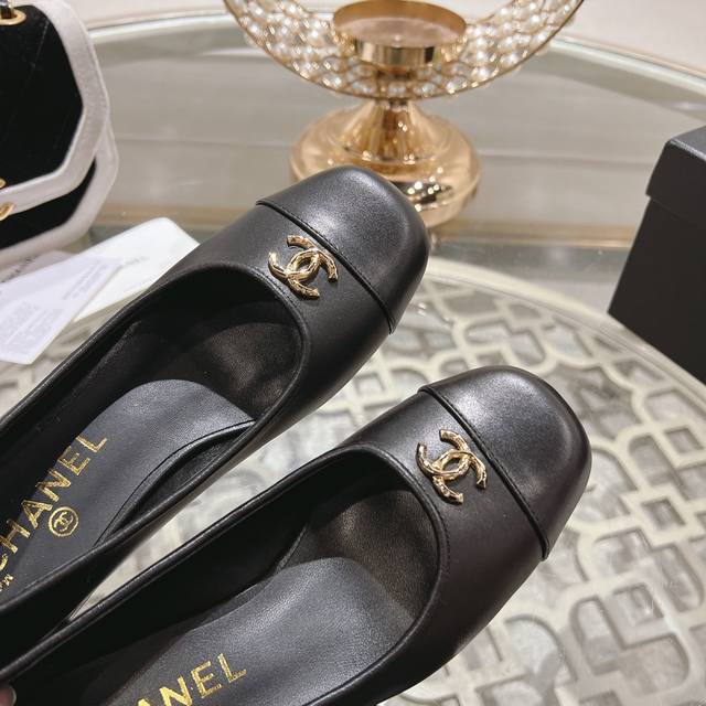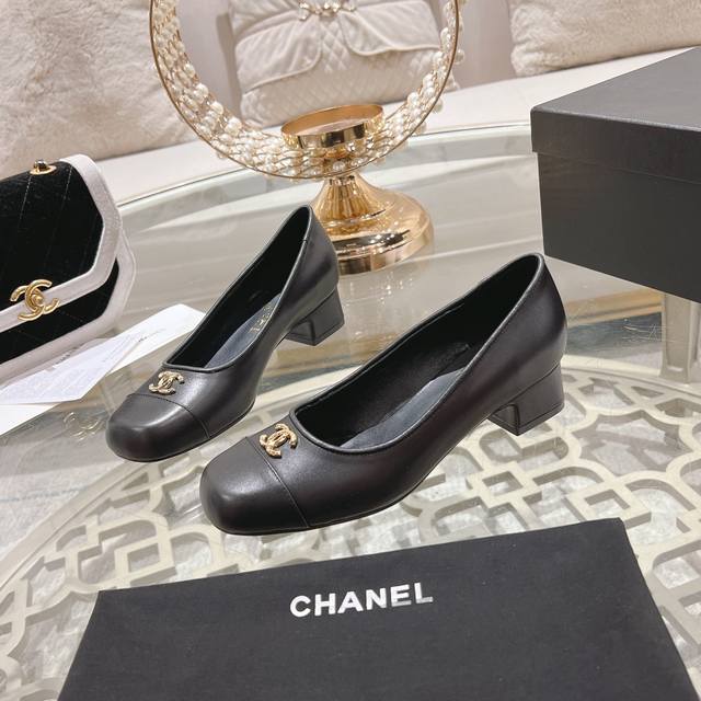 24Ss新款chane*小香圆头粗跟单鞋