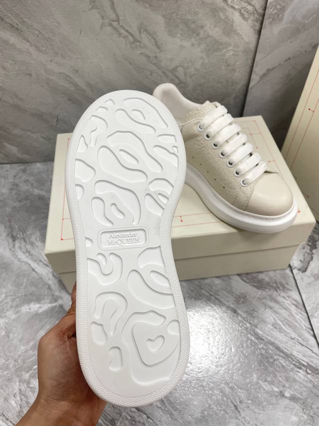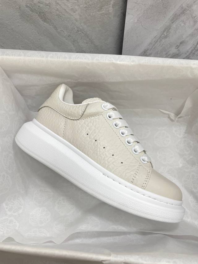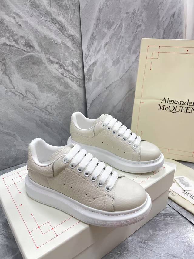 25新款二代 Alex*Nder Mc*Ueen麦昆官网最新荔枝纹路系列小白鞋 这款的特点在于每一只鞋都有复古艺术气息,想不出任何理由不收它 鞋面采用进口头层牛