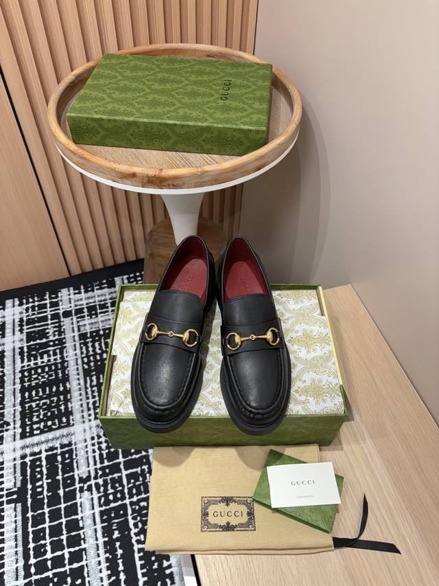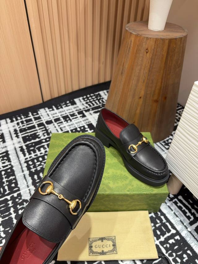 典藏图案继续在gucci全新系列中大放异彩。全新系列匠心呈献马衔扣配件,彰显品牌马术传承。这款女士乐福鞋采用皮革制作,搭配橡胶沟纹鞋底