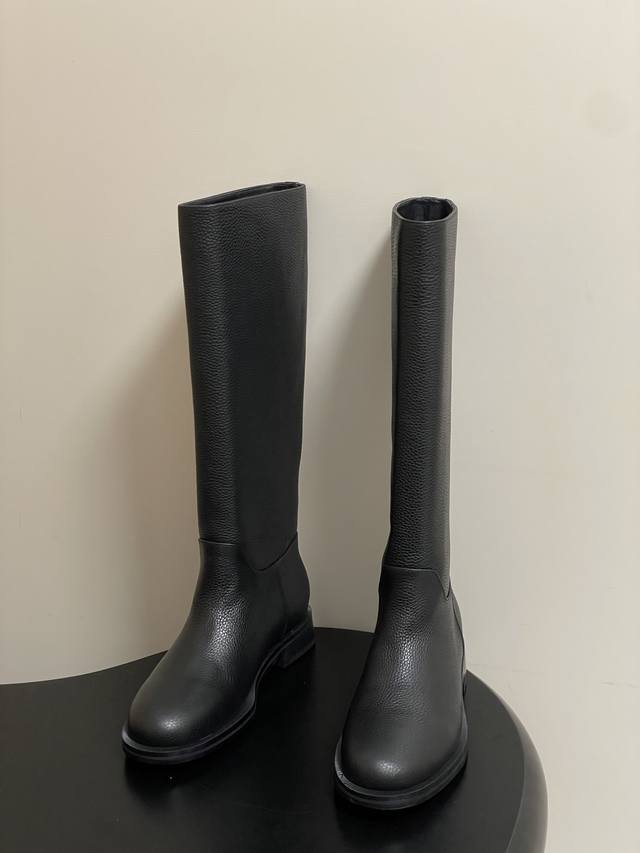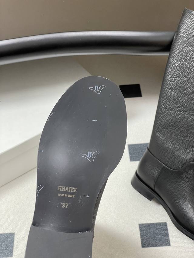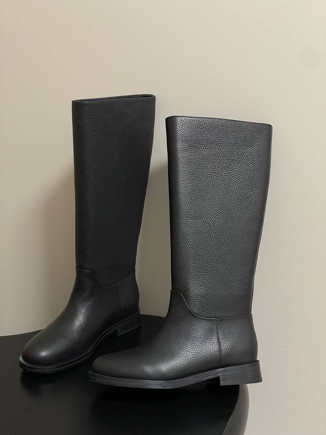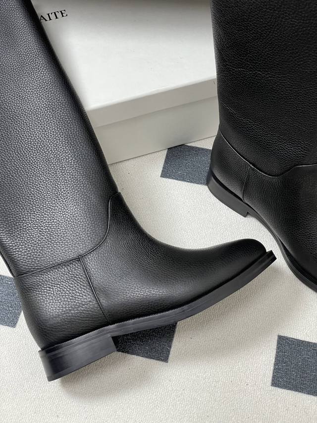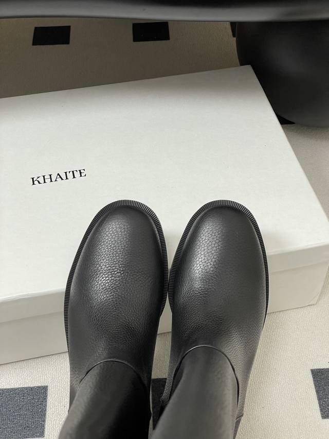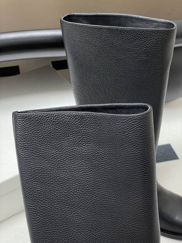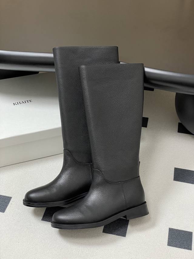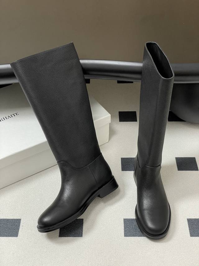 25Ss秋冬新款Khaite 小众潮牌 荔枝纹复古套筒靴一脚蹬直筒骑士靴