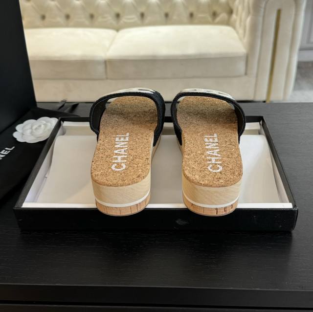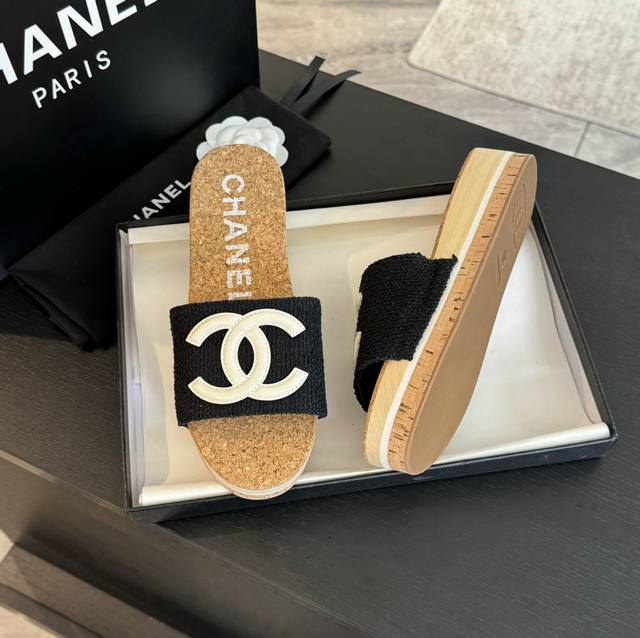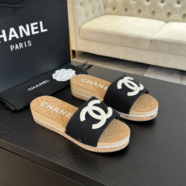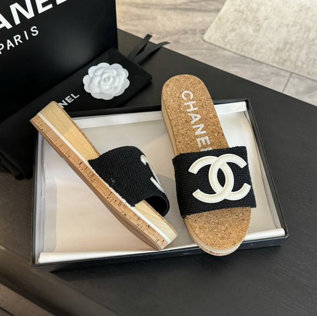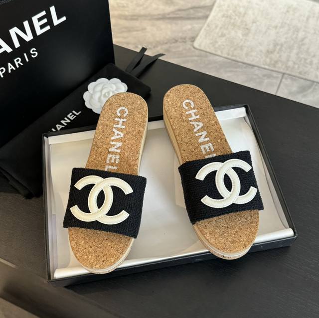 330 chane*|小香25C春夏新品 珍珠大双C厚底拖鞋 夏天一定要入的凉拖系列 可文艺可时髦 穿搭率实在太高了 pp草鞋面镶嵌双C大Logo 让人耳目一新