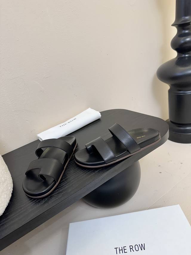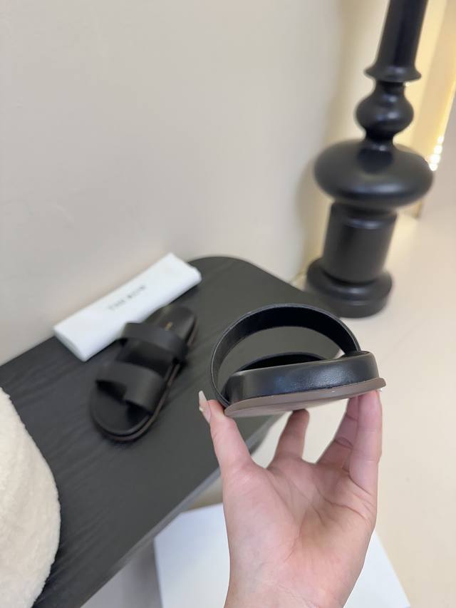 the Row 25Ss 春夏新款简易皱面简易平底 夹脚拖鞋!